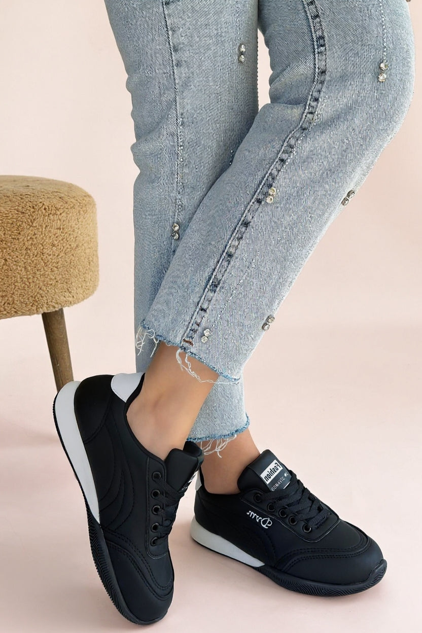 Tawen Kadın Siyah Bağcıklı Spor Ayakkabı