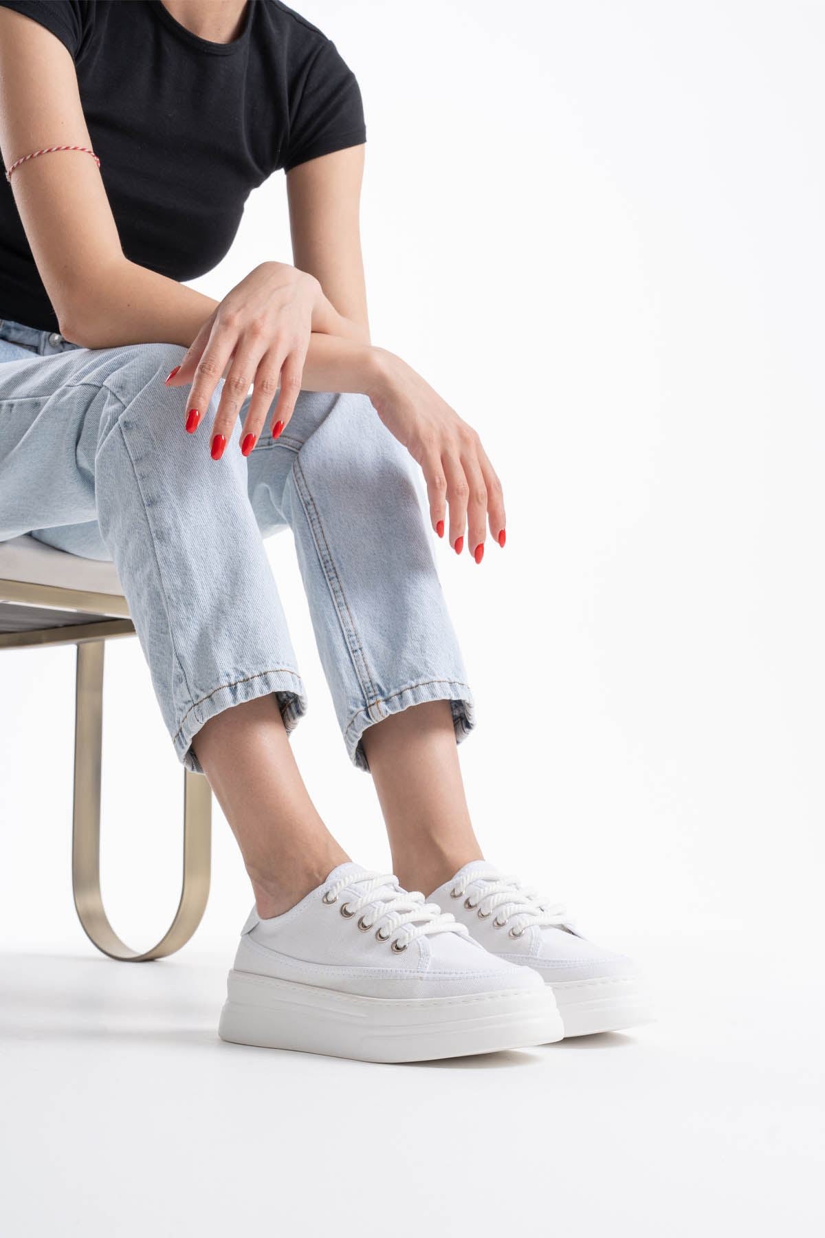 Glown Kadın Beyaz Keten Spor Ayakkabı