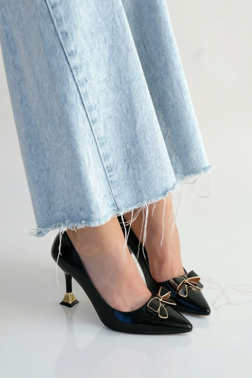 Coby Kadın Siyah Rugan Fiyonk Detaylı Topuklu Ayakkabı