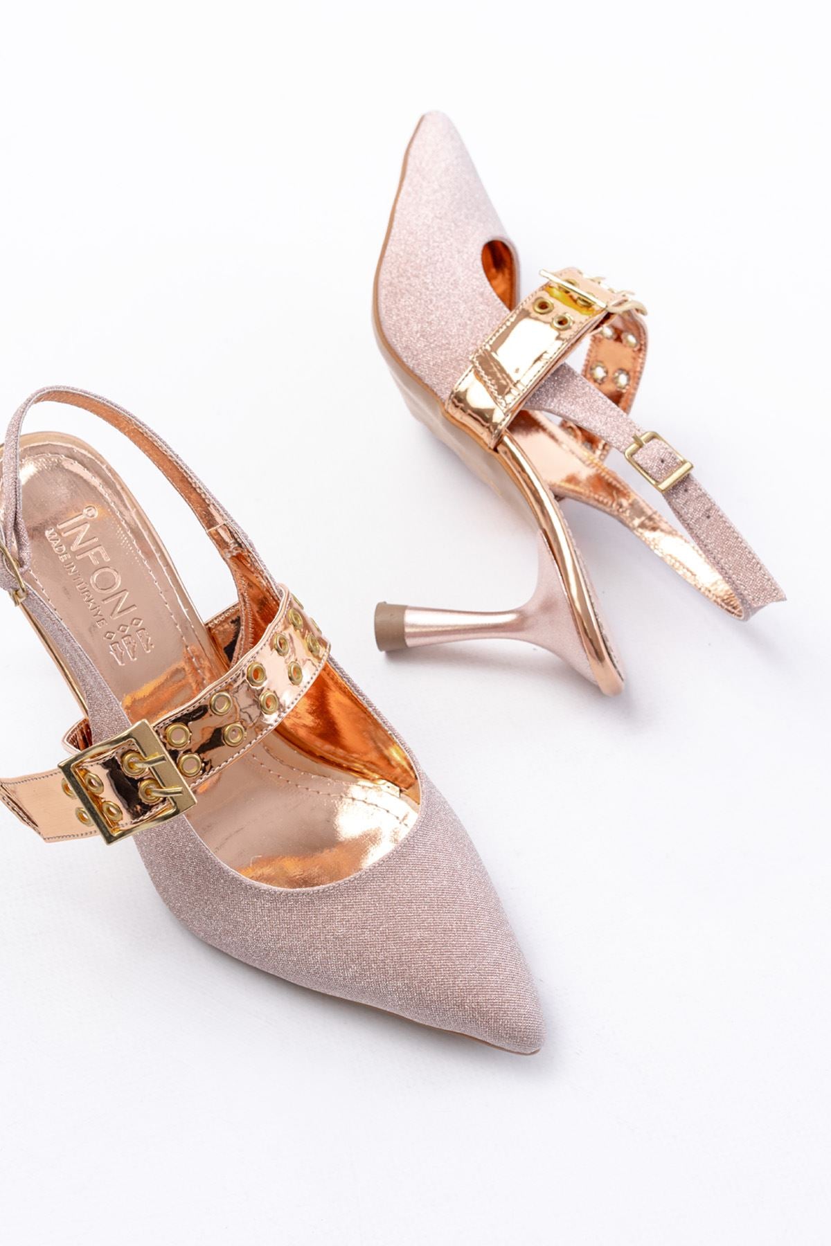 Gepsun Rose Simli Günlük Arkası Açık Baret Tokalı Topuklu Ayakkabı