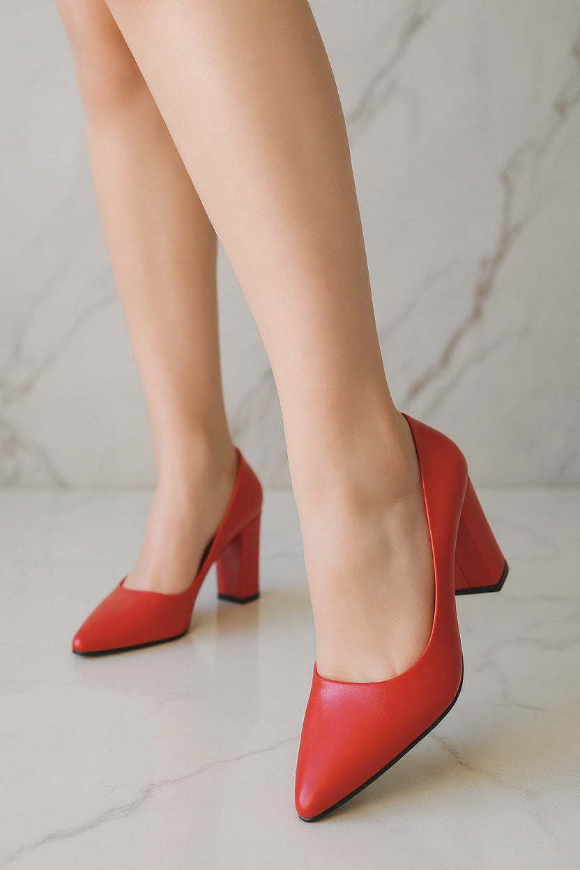 Giort Kadın Kırmızı Sivri Burun Yüksek Topuklu Ayakkabı