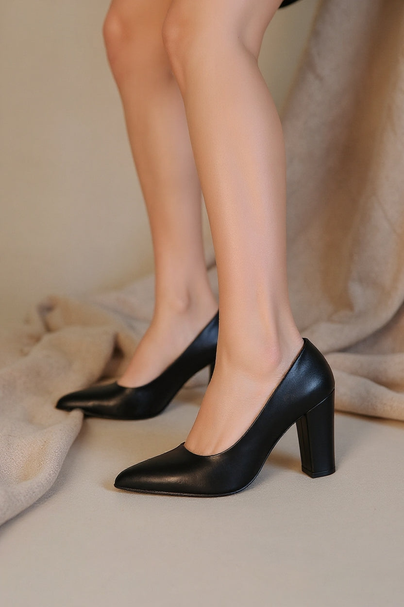 Giort Kadın Siyah Sivri Burun Yüksek Topuklu Ayakkabı