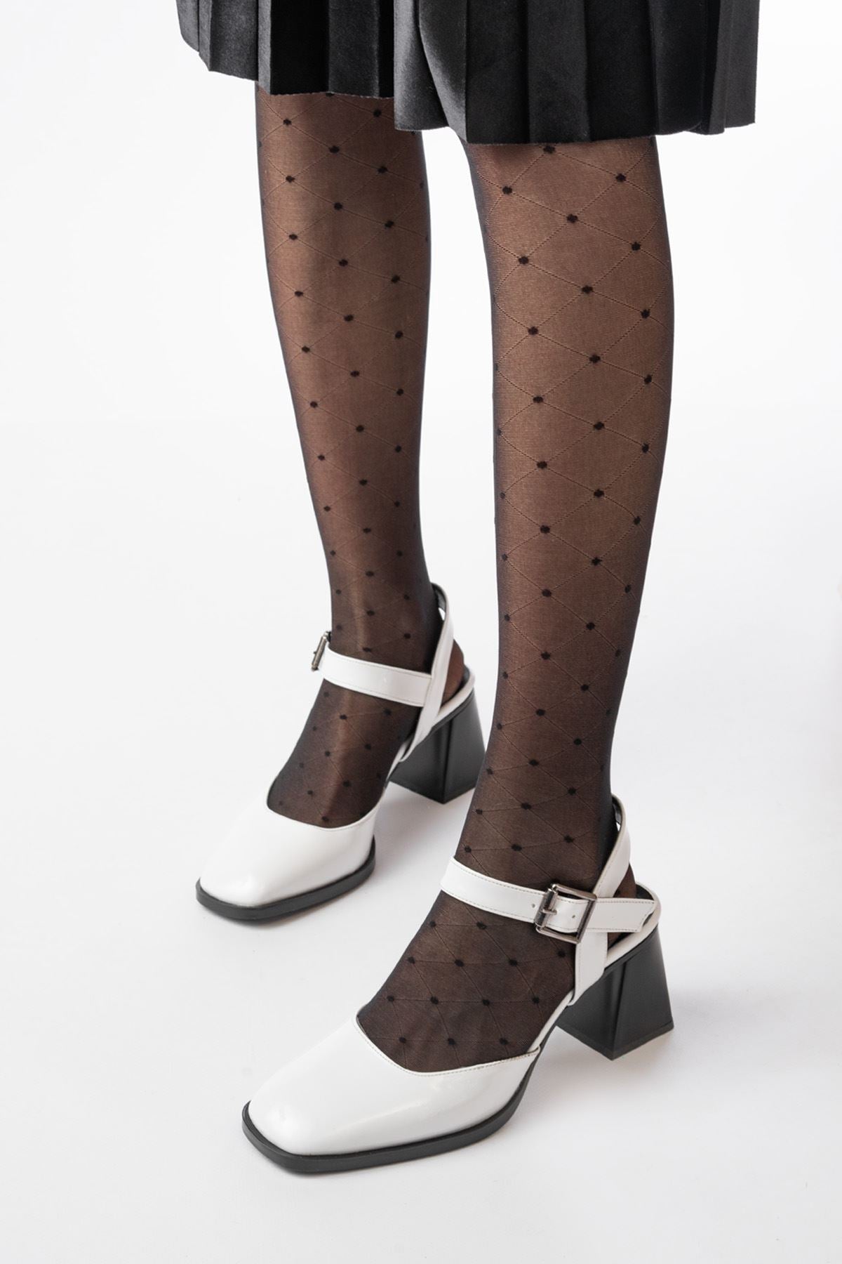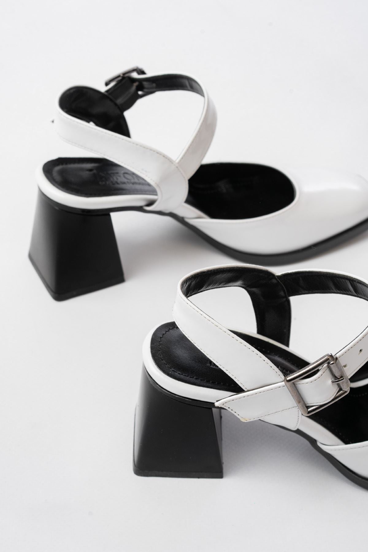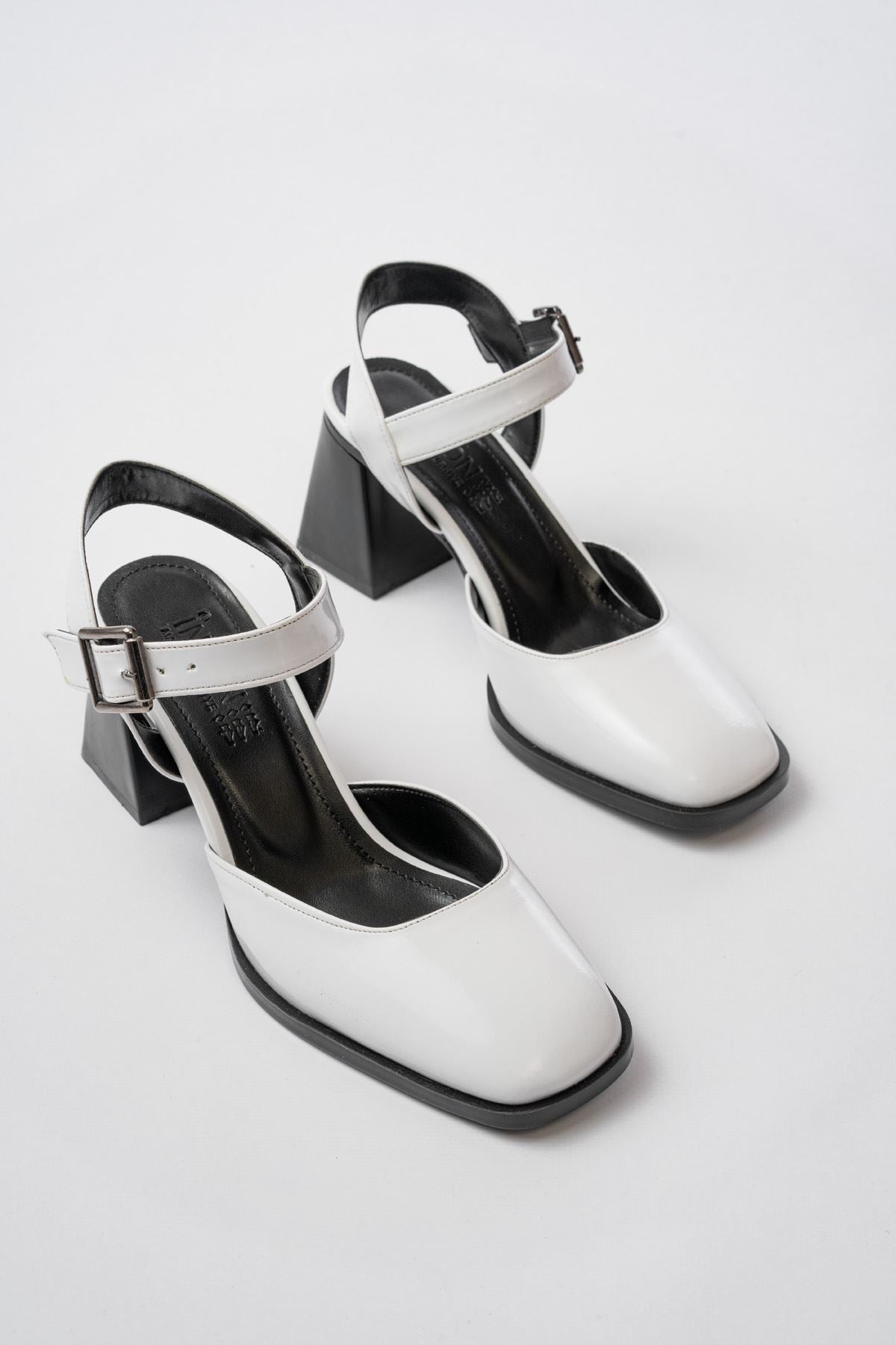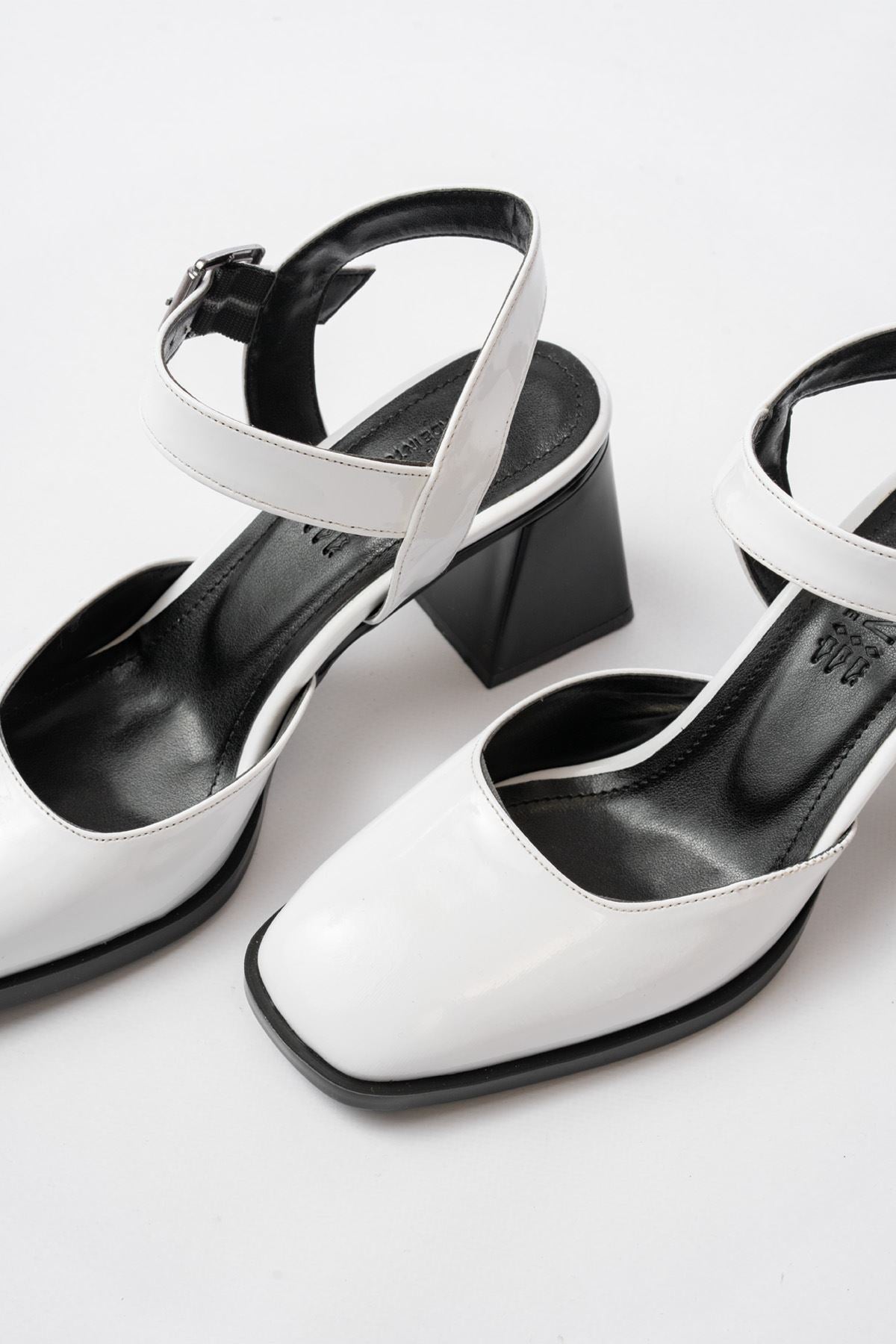 Gruone Beyaz Rugan Günlük Arkası Açık Topuklu Ayakkabı