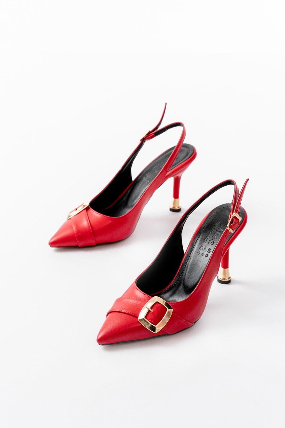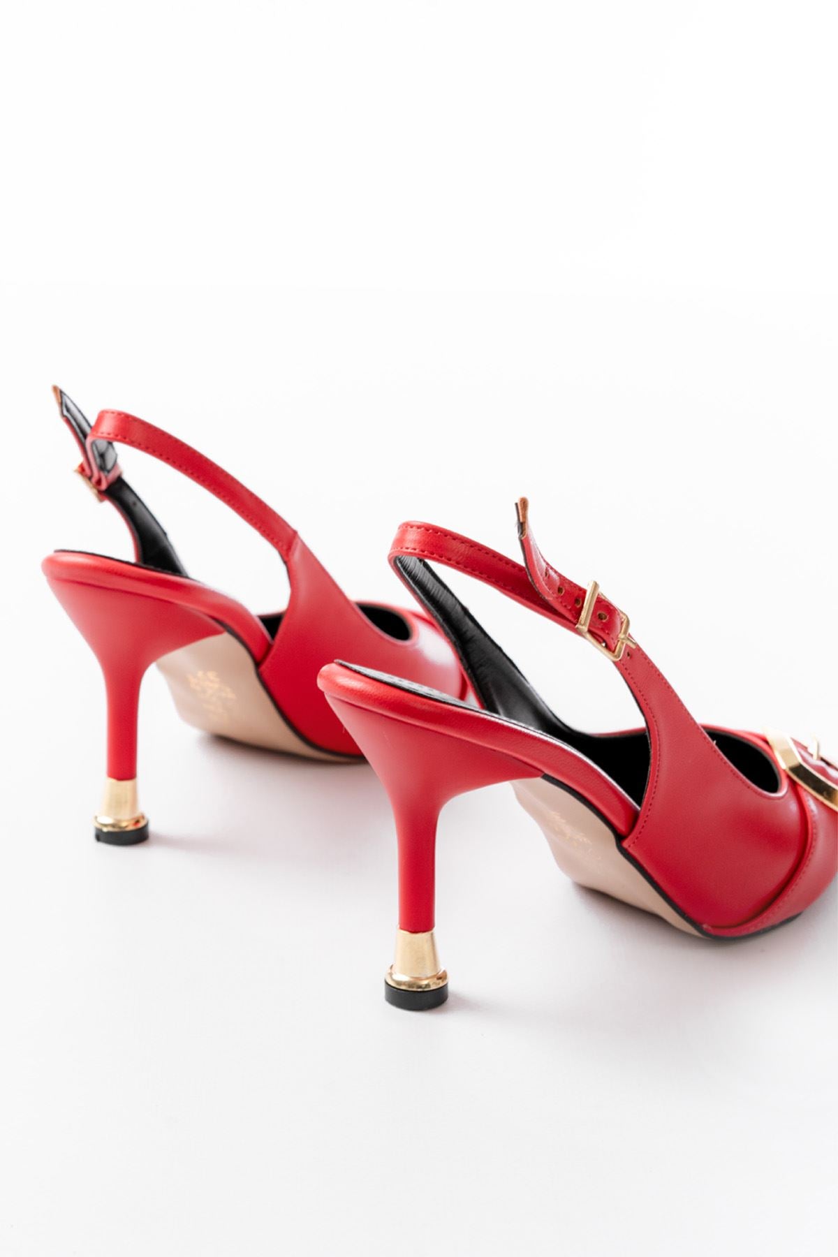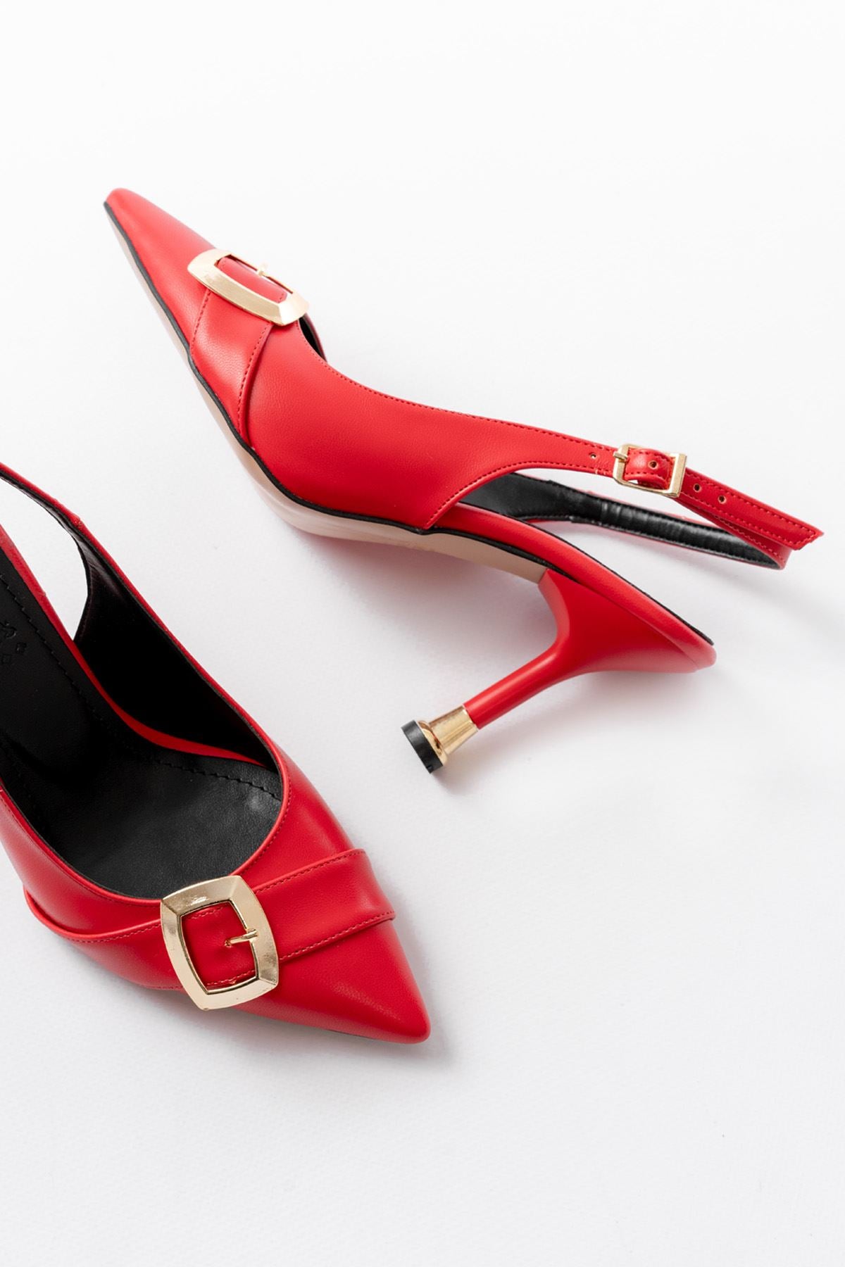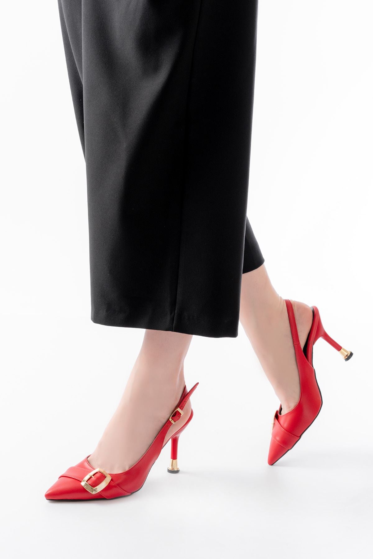 Henkate Kırmızı Günlük Arkası Açık Topuklu Ayakkabı