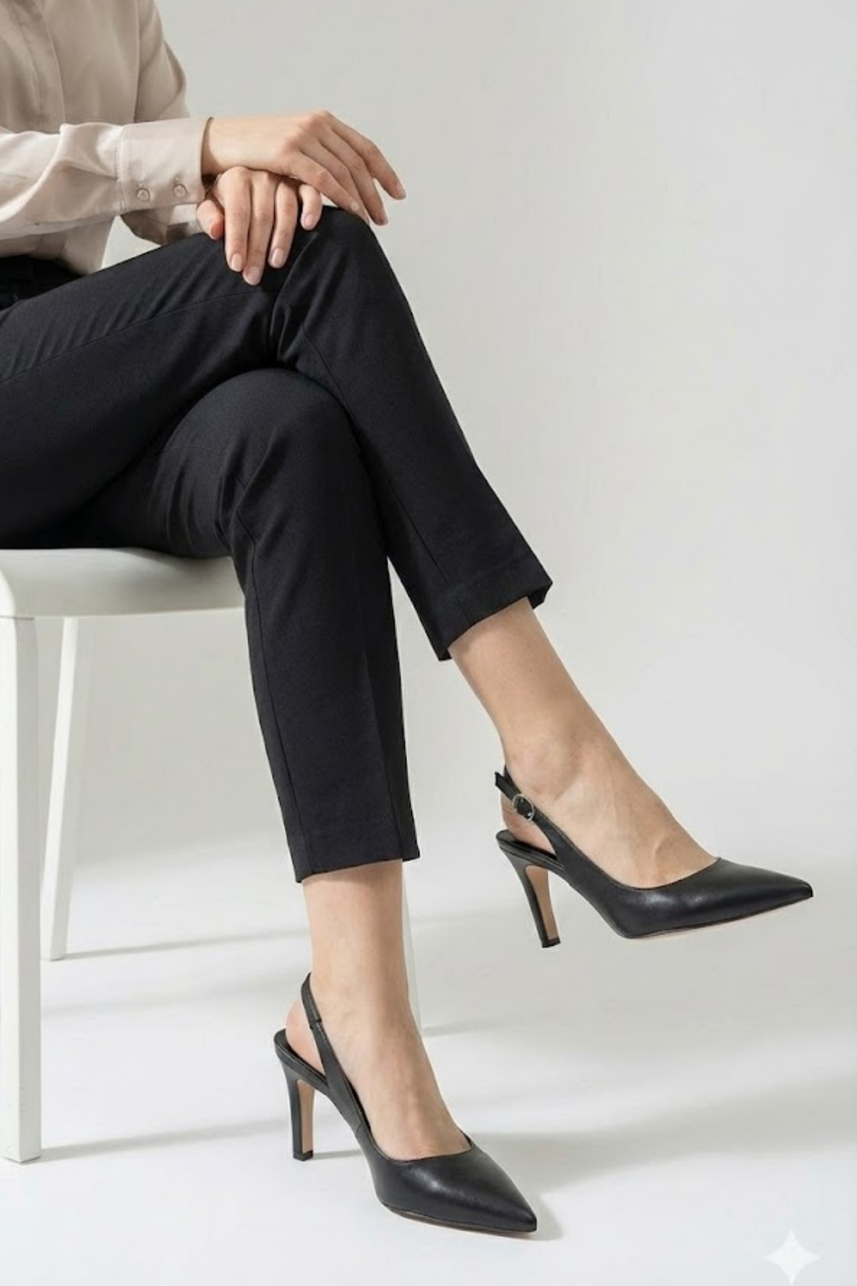 Sade çizgileri ve arkası açık formuyla öne çıkan bu model, feminen stile modern ve net bir ifade kazandırır. Sivri burun tasarımı ayağa daha zarif bir siluet sunarken, temiz yüzeyiyle güçlü ama abartısız bir duruş sergiler. Arka açık yapısı, modele hafif ve şehirli bir karakter katarak güncel kombinlerle kolay uyum sağlar.Şehir stilinden özel davet kombinlerine kadar farklı kullanım senaryolarına uyum sağlayan Holzercy, ayağı saran yapısı sayesinde kontrollü ve dengeli bir kullanım hissi sunar. Standart ayak ölçülerine uygun kalıbı, gün boyu konforlu bir deneyimi hedeflerken; minimal detaylarıyla kombinlerde net bir tamamlayıcı rol üstlenir.