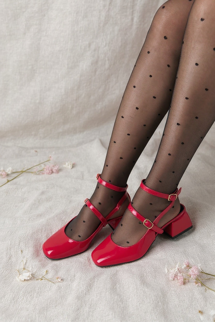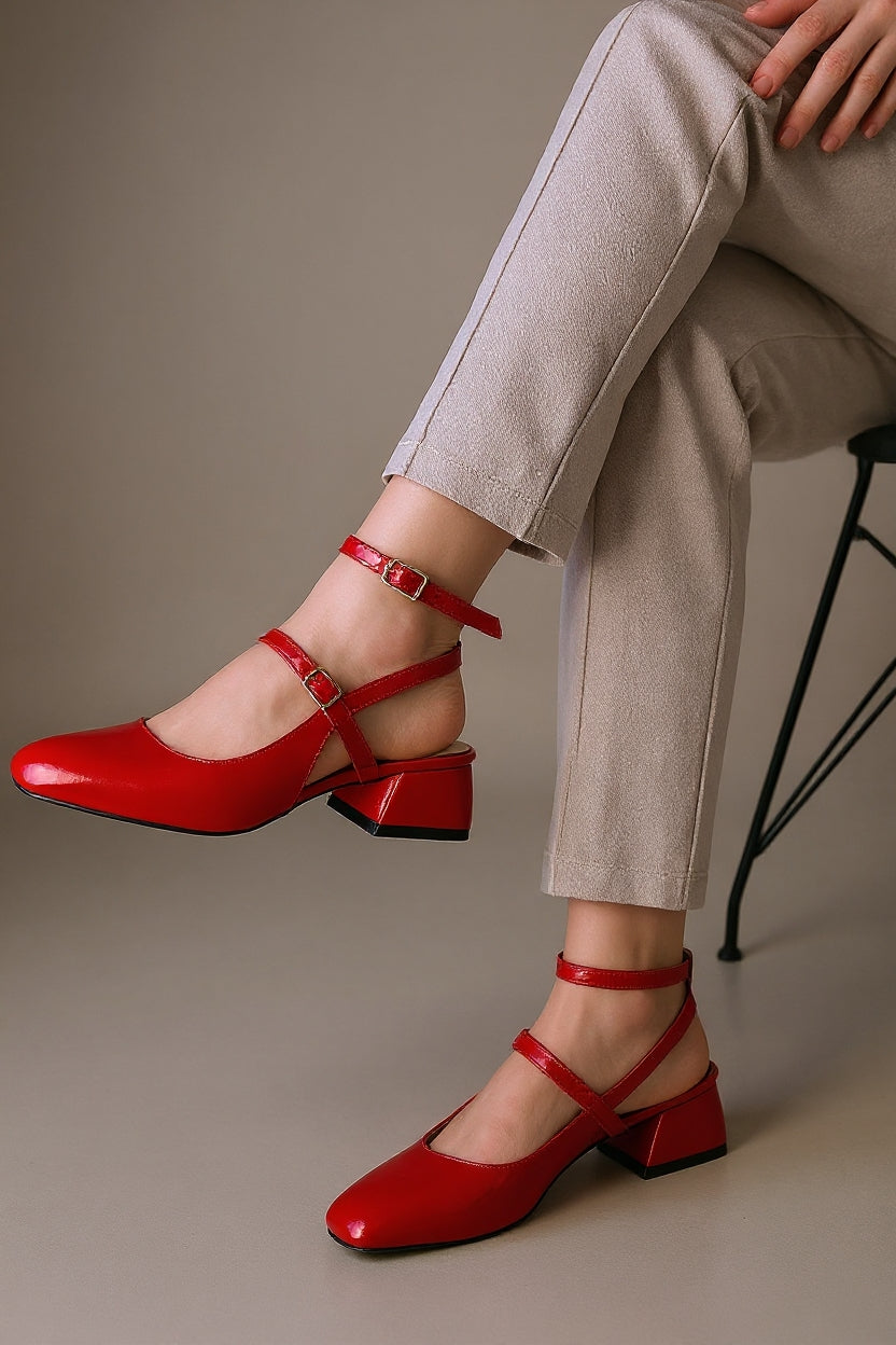 Karmi Kadın Kırmızı Rugan Kapalı Burun Kısa Topuklu Ayakkabı