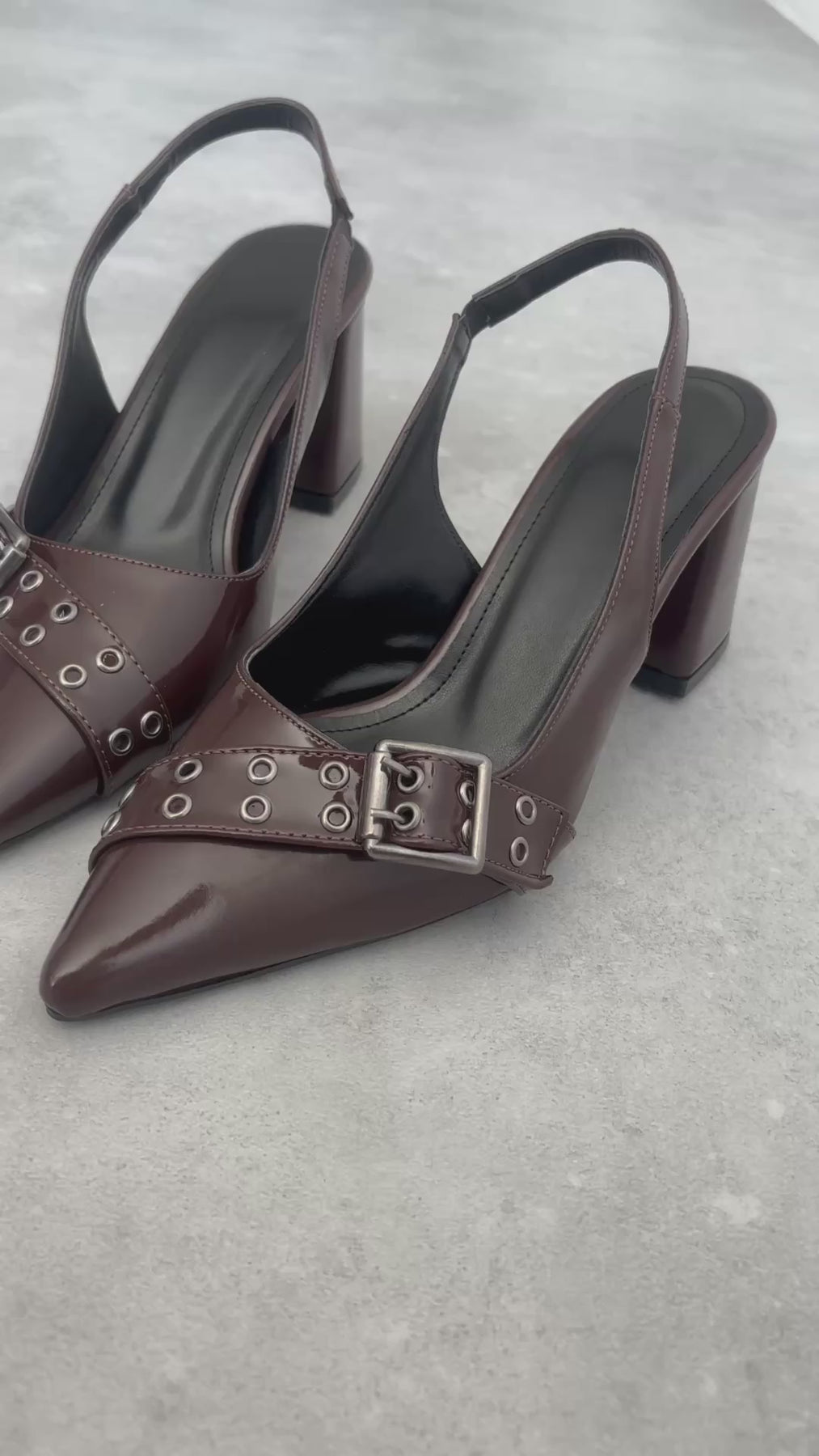 Modern detayları klasik bir siluetle buluşturan Keira, güçlü ve karakterli bir duruş arayanlar için tasarlandı. Sivri burun formu ayağı daha zarif gösterirken, ön kısımda yer alan metal tokalı bant detayı modele sofistike ve iddialı bir hava katar. Rugan yüzeyi, ışığı dengeli şekilde yansıtarak stilin netliğini öne çıkarır.Arkası açık formu ve dengeli kalın topuk yapısı sayesinde hem şık davetlerde hem de özel gün kombinlerinde rahatlıkla tercih edilebilir. Elbise, etek ya da kumaş pantolonlarla güçlü bir uyum yakalayarak stilinizi tamamlar.