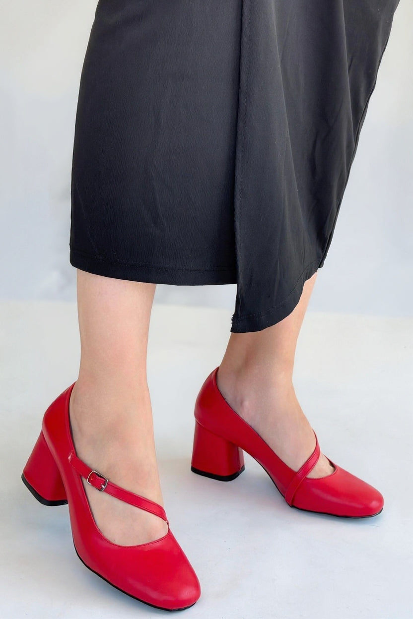 Kier Kadın Kırmızı Kapalı Burun Topuklu Ayakkabı