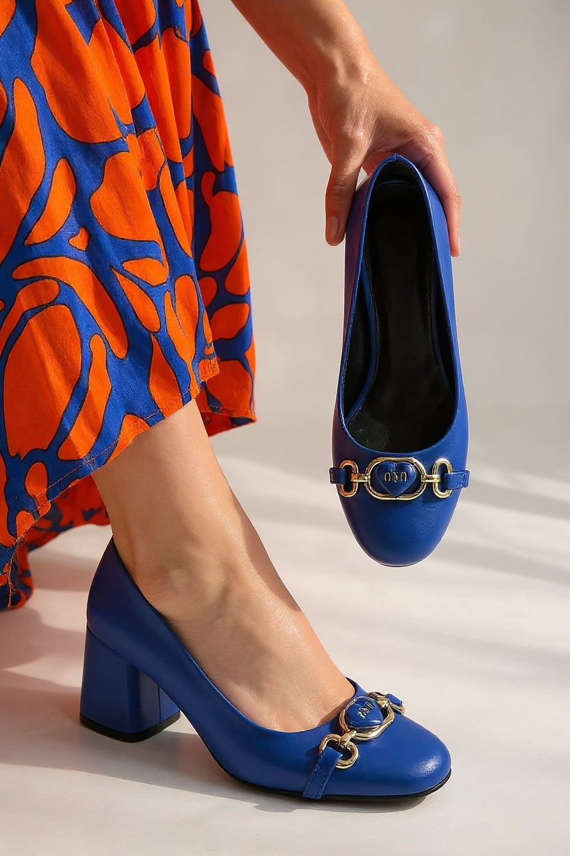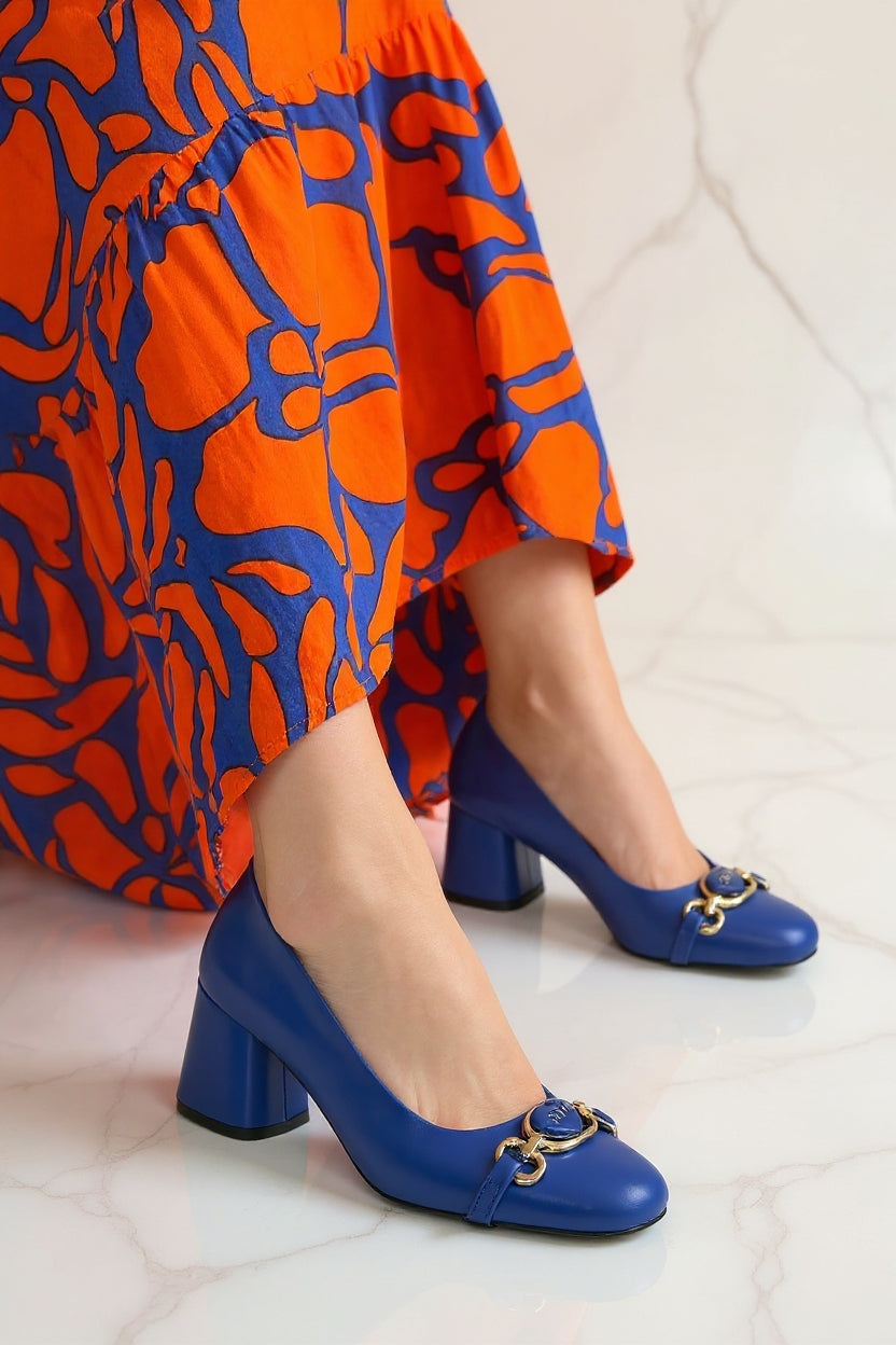 Lucky Kadın Mavi Kapalı Burun Kalın Topuklu Ayakkabı