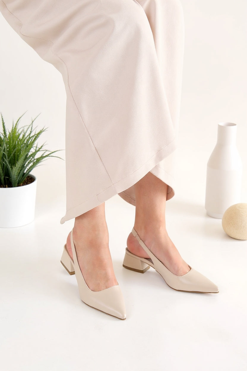 Günlük şıklığı sade ama iddialı bir çizgiyle tamamlayan bu model, kapalı burun formu ve kısa topuk yapısıyla gün boyu dengeli bir kullanım sunar. Arkası açık bant detayı ayağı nazikçe kavrarken, sivri burun tasarımı feminen bir siluet kazandırır. Hem ofis stilinde hem şehir kombinlerinde rahatlıkla tercih edilebilecek zamansız bir alternatiftir.