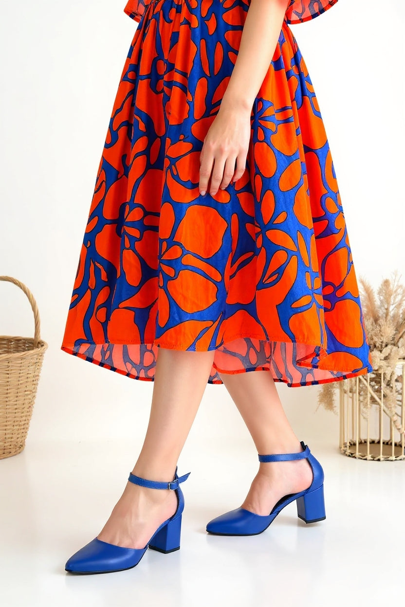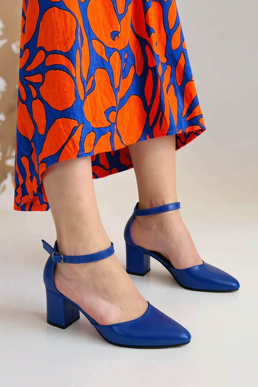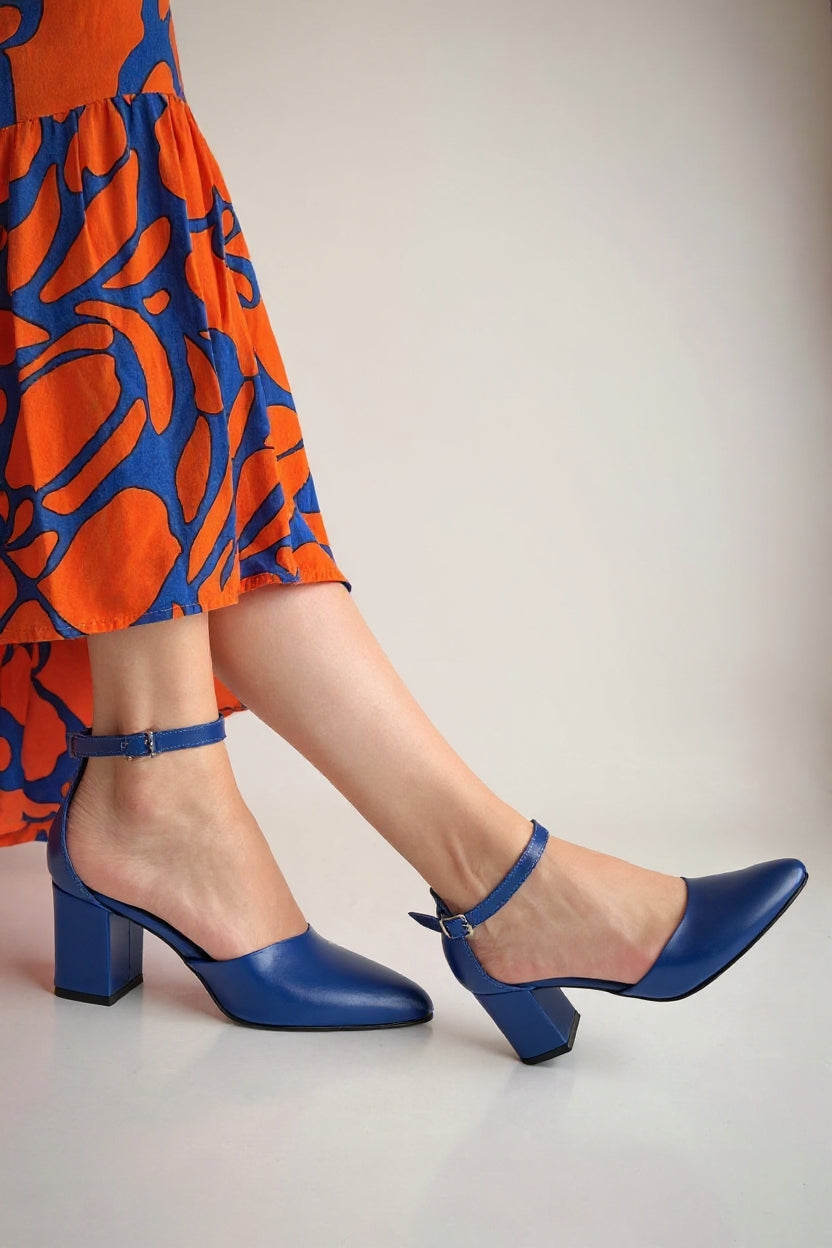 Mulen Kadın Mavi Kemerli Orta Topuklu Ayakkabı