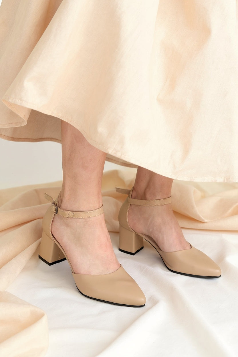 Mulen Kadın Nude Kemerli Orta Topuklu Ayakkabı