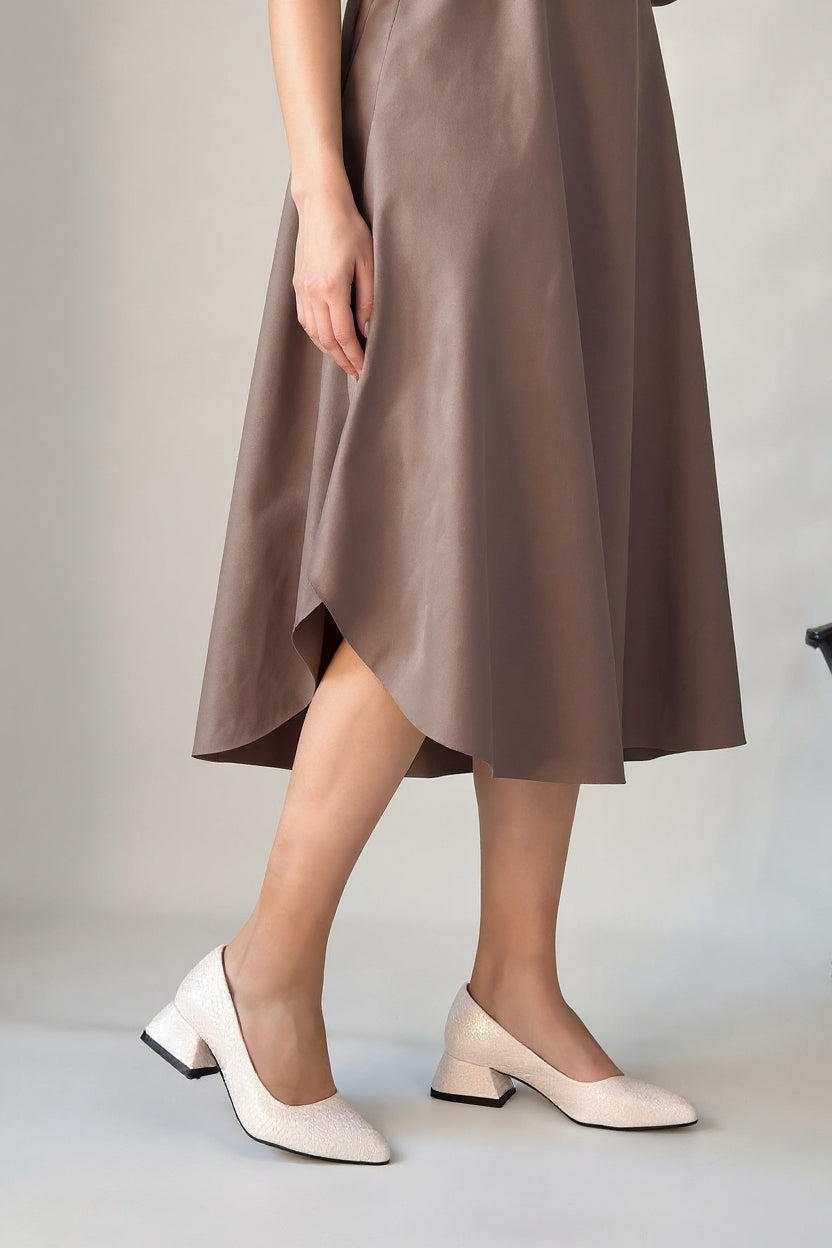 Günlük ve şık kombinlerde rahatlığı ön planda tutan Nitya Kadın Bej Baskılı Rugan Topuklu Ayakkabı, kısa topuk formu sayesinde gün boyu dengeli ve konforlu bir kullanım sunar. Kapalı burun yapısı ve baskılı rugan yüzeyi, modele modern ve zarif bir karakter kazandırırken; şehir temposuna uyum sağlayan formu ile ofisten günlük davetlere kadar geniş bir kullanım alanı sunar.