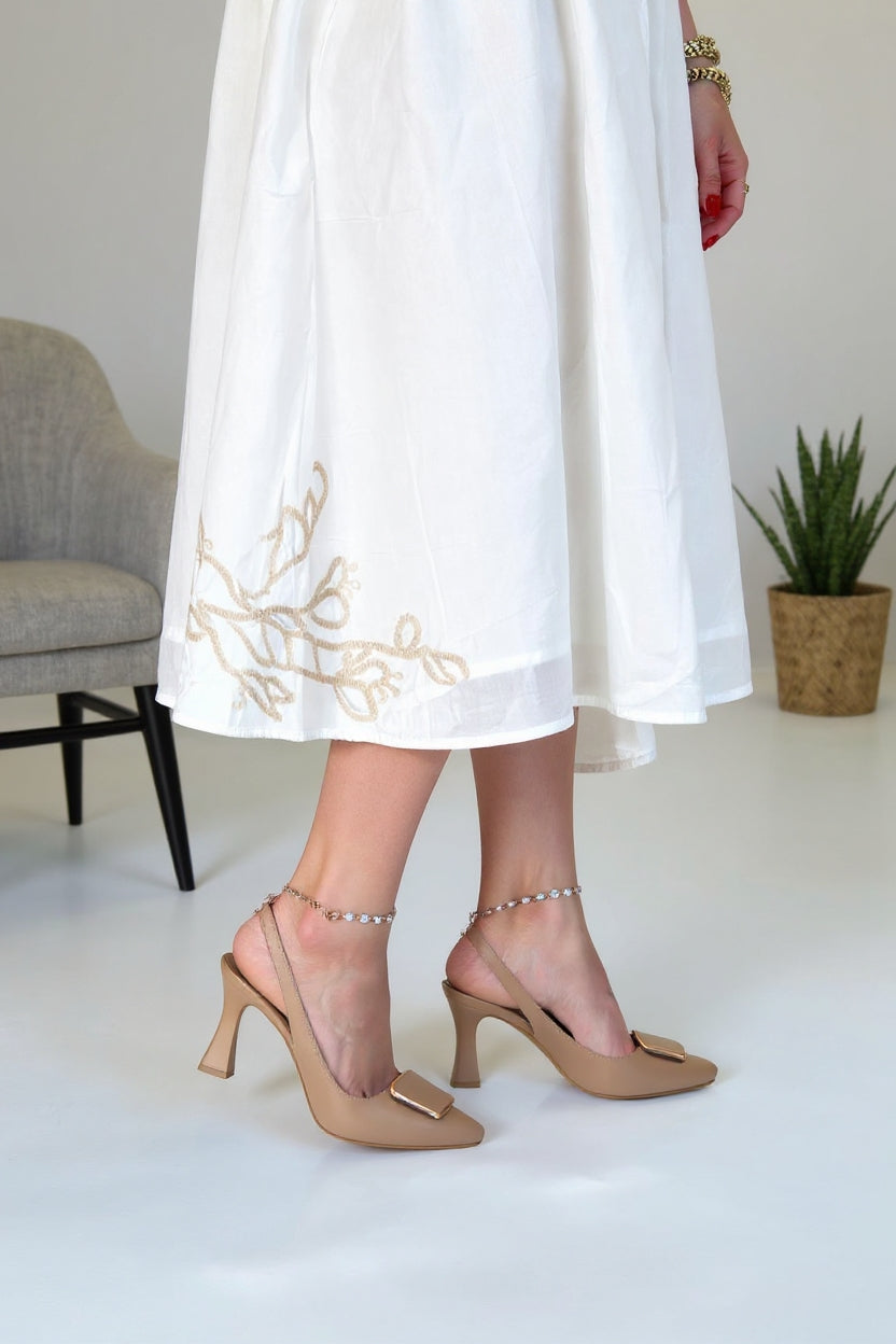 Piert Kadın Nude Tokalı Topuklu Ayakkabı