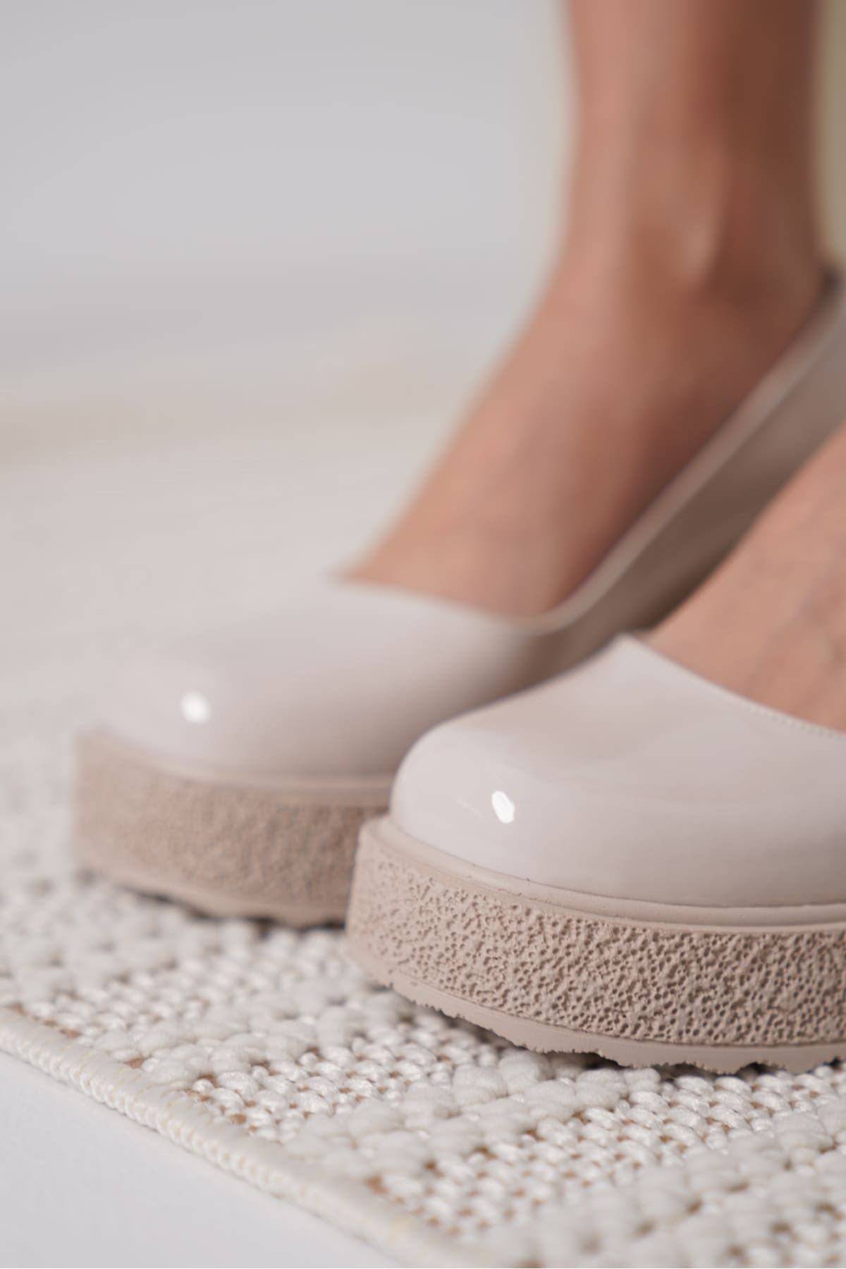Talya Kadın Bej Rugan Kısa Kalın Topuklu Ayakkabı