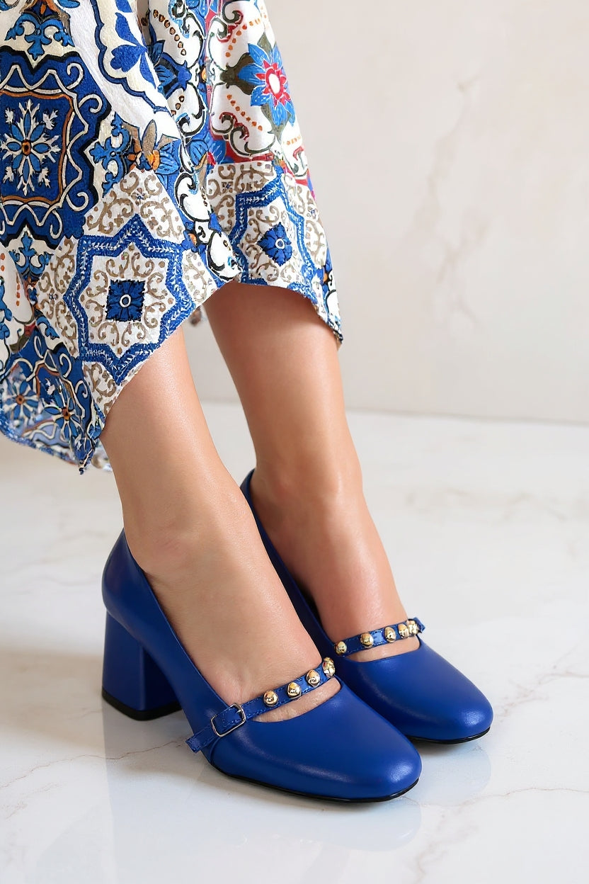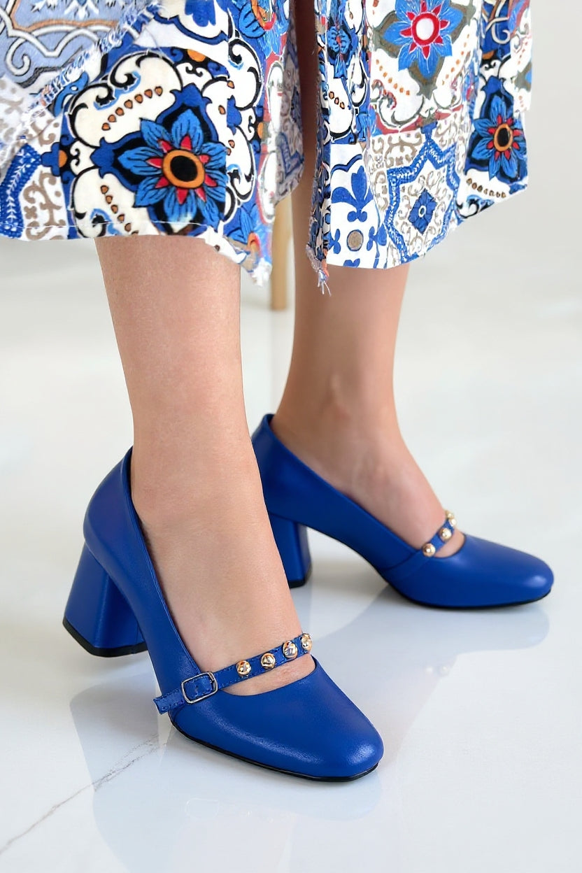 Tino Kadın Mavi Tokalı Topuklu Ayakkabı