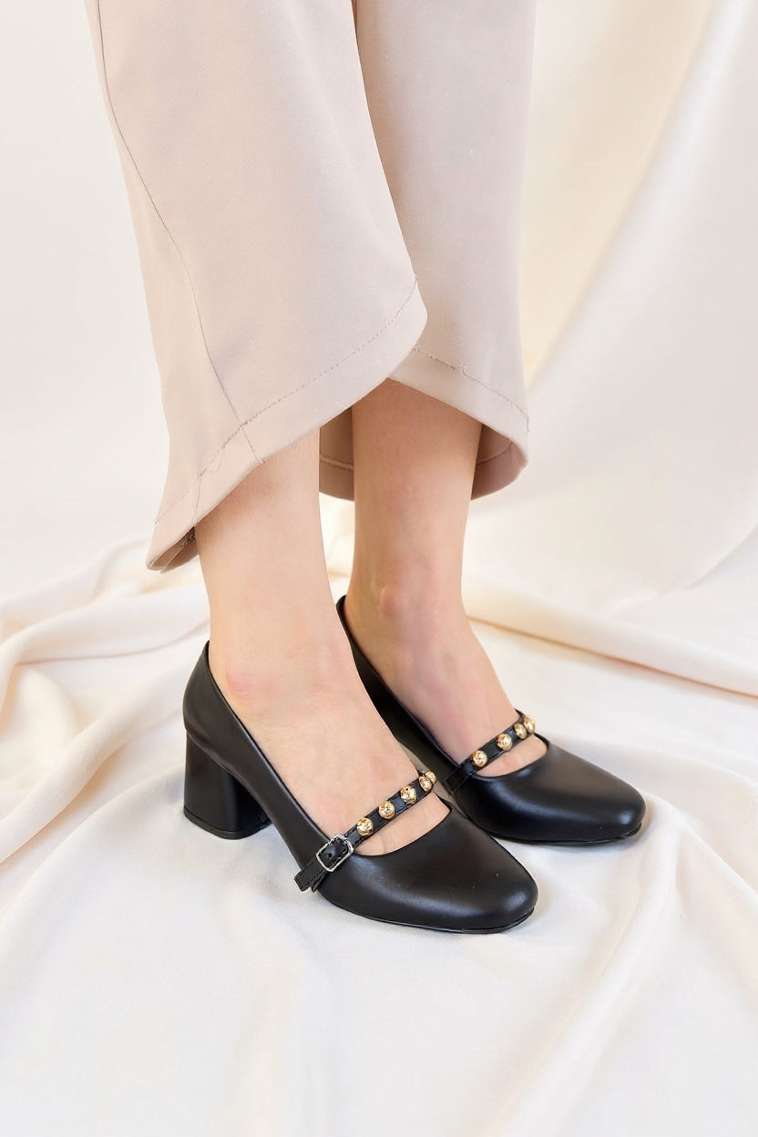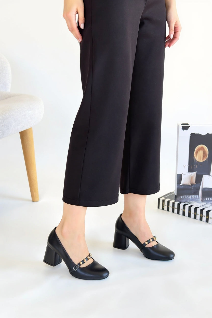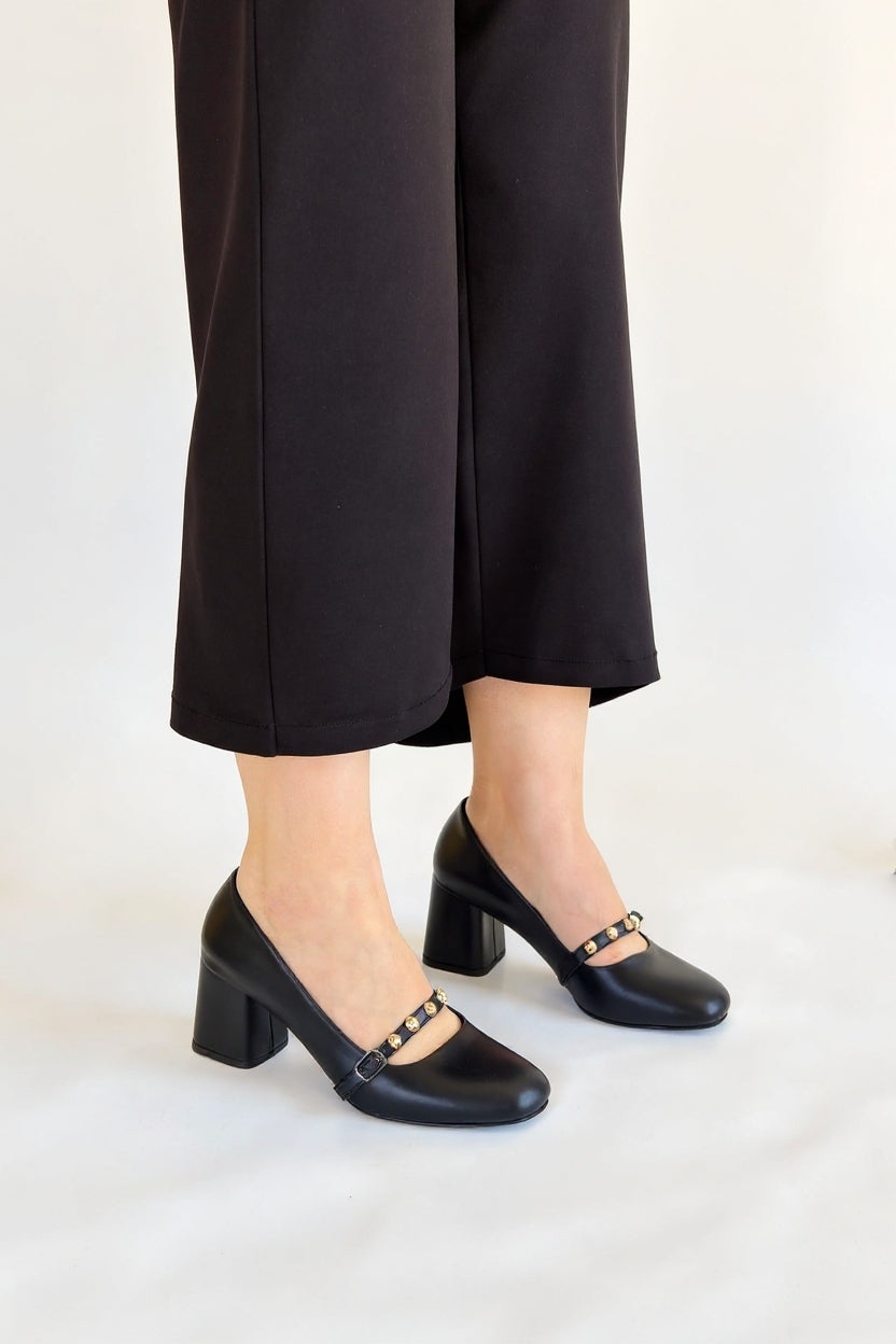Tino Kadın Siyah Tokalı Topuklu Ayakkabı