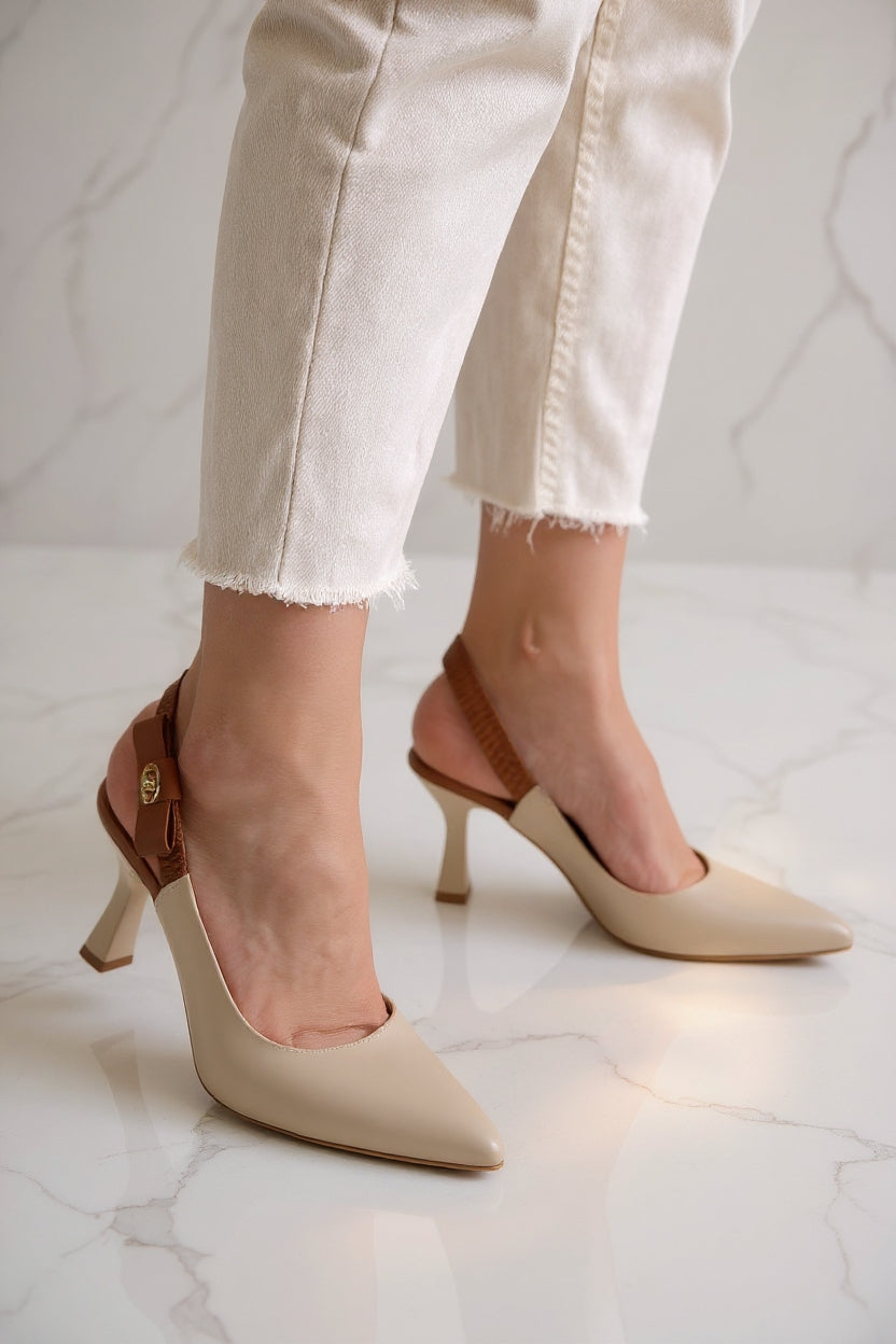 Toran Kadın Bej Arkadan Lastikli Topuklu Ayakkabı