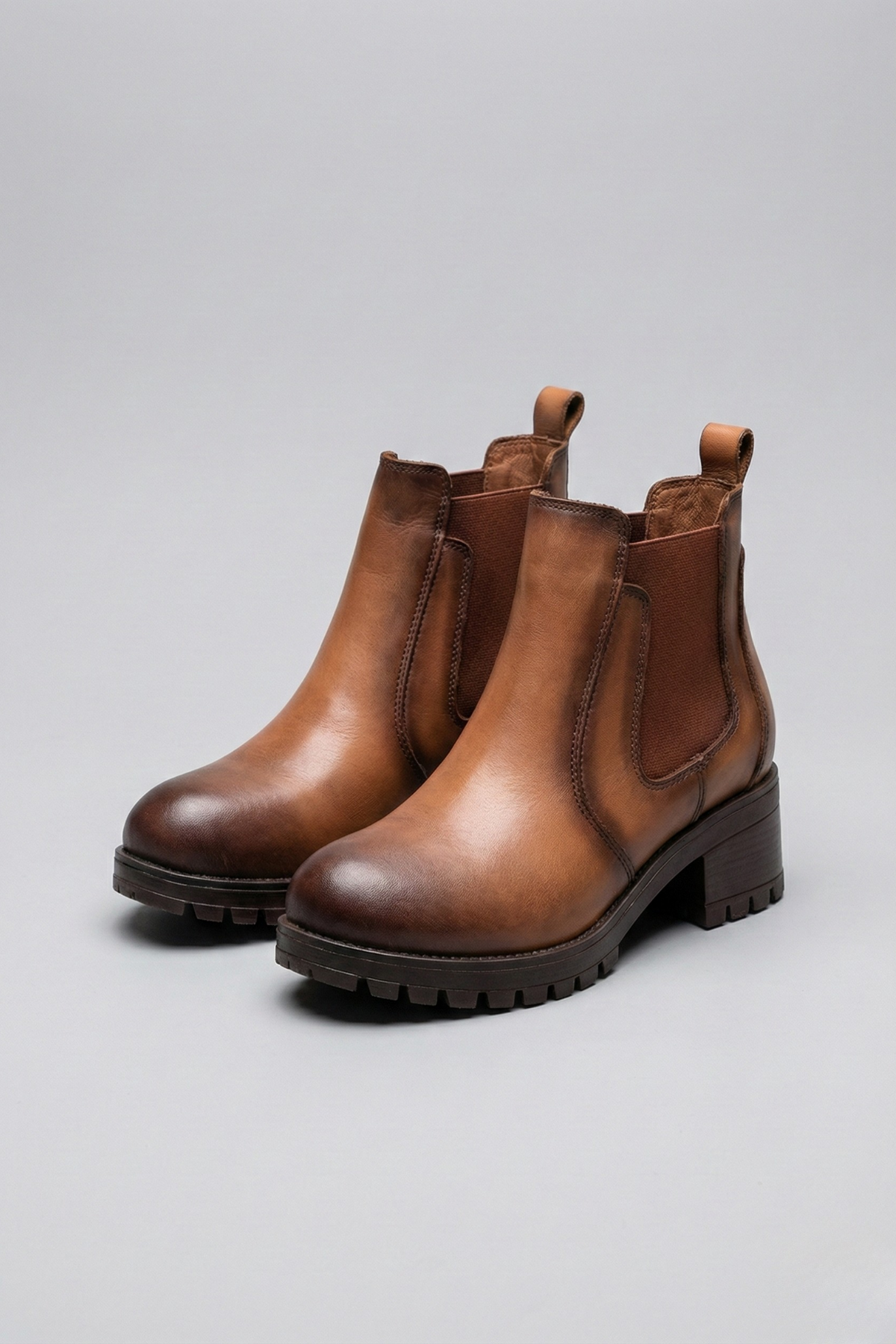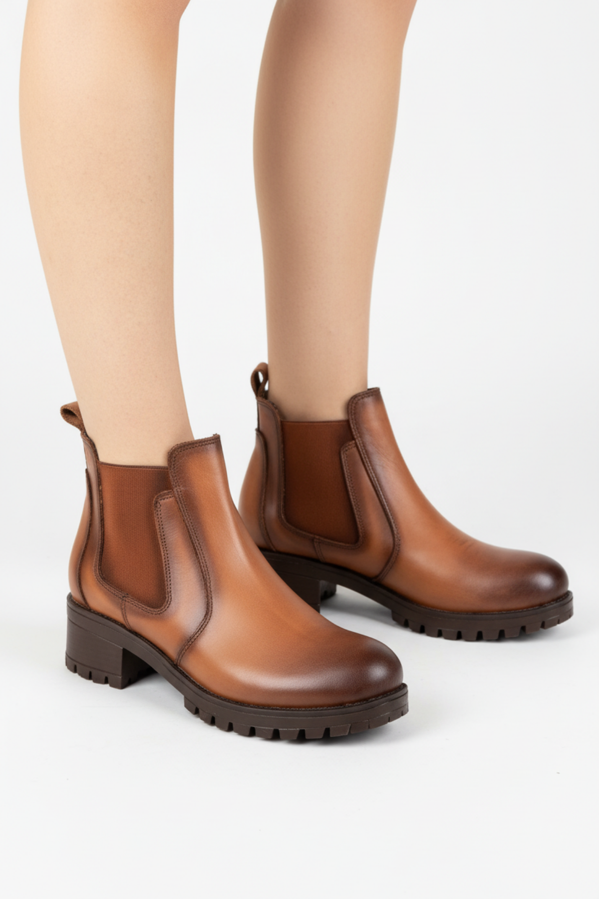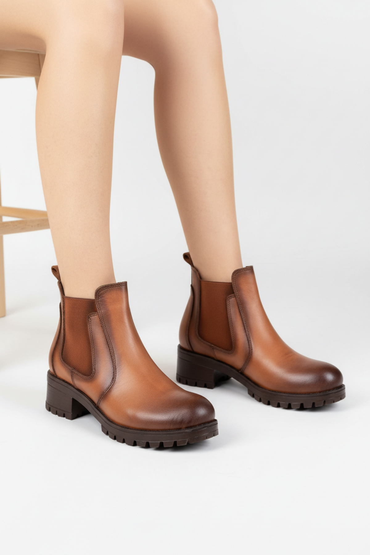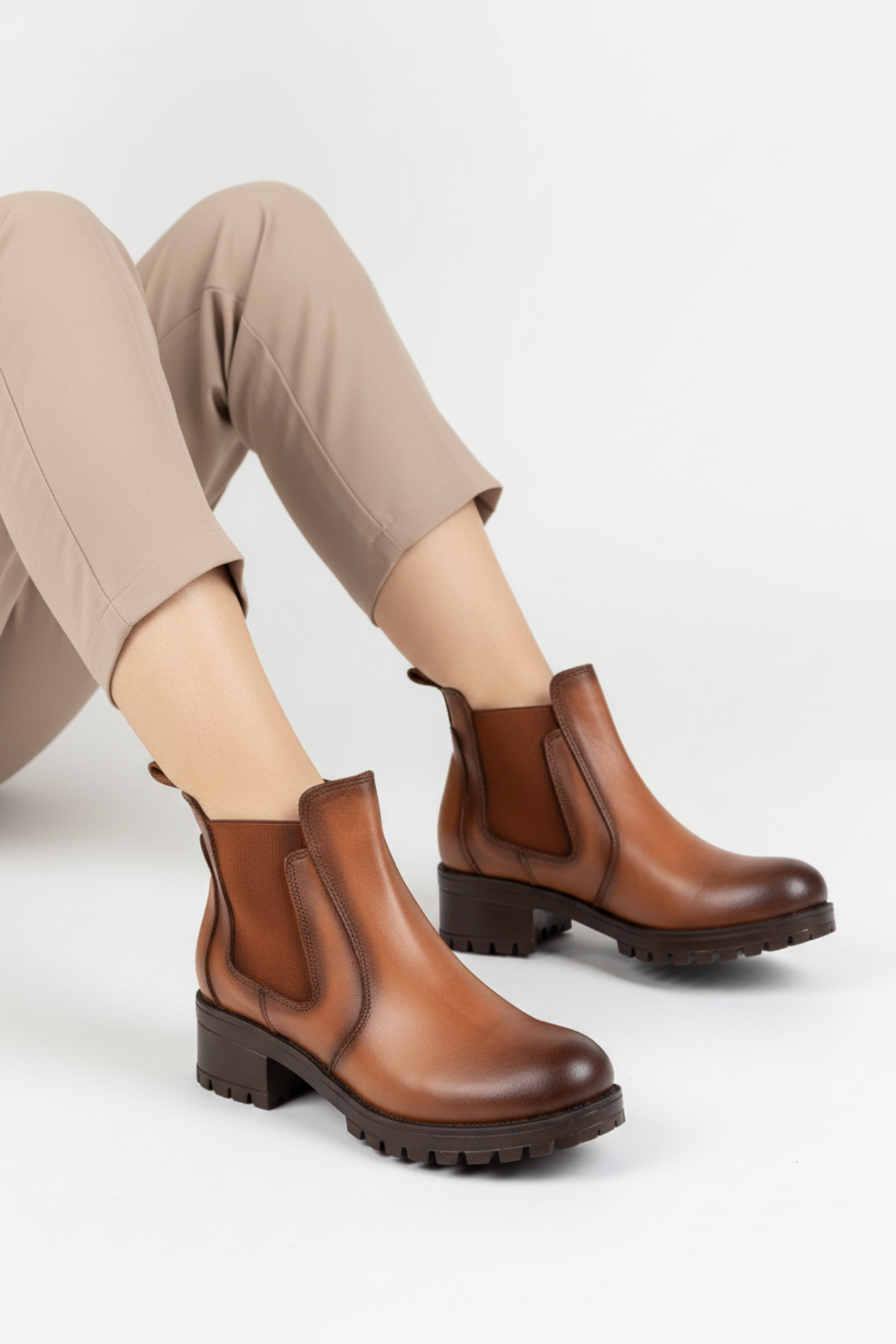 Efser Kadın Hakiki Deri Elastik Bantlı Taba Bot
