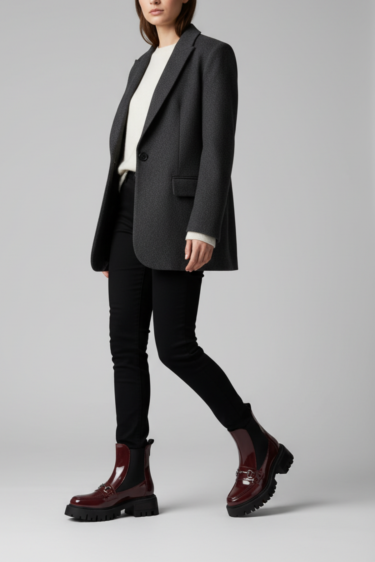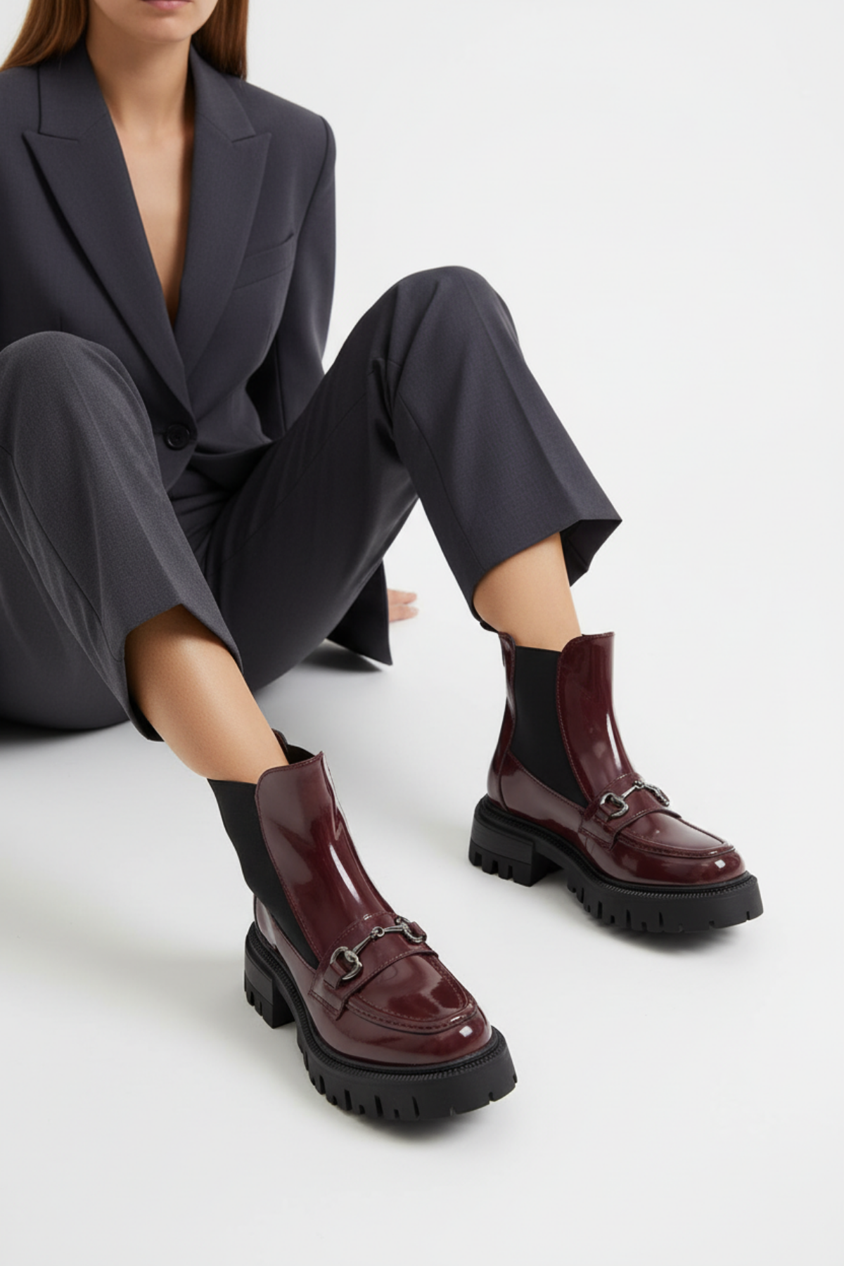 Mephen kadın bot, modern tasarımı ve parlak rugan detayları ile dikkat çeker. Bilekten lastikli yapısı sayesinde kolayca giyilebilir ve ayağı sararak konfor sunar. Sert tabanı ve güçlü yapısı ile günlük kullanıma uygundur. Şıklığı ve işlevselliği bir arada sunar.