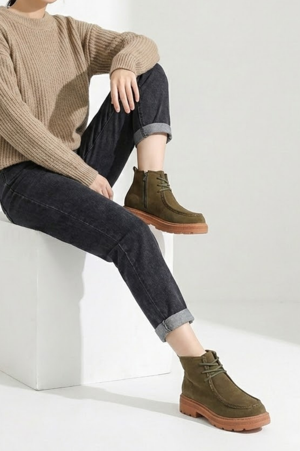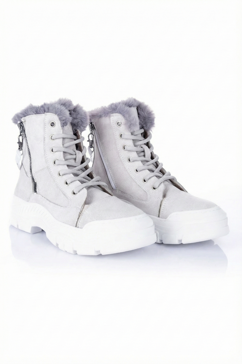 Span Kadın Süet Kürklü Çift Fermuarlı Buz Bot