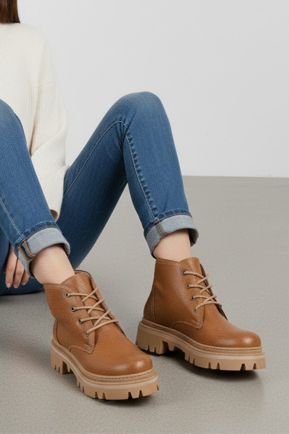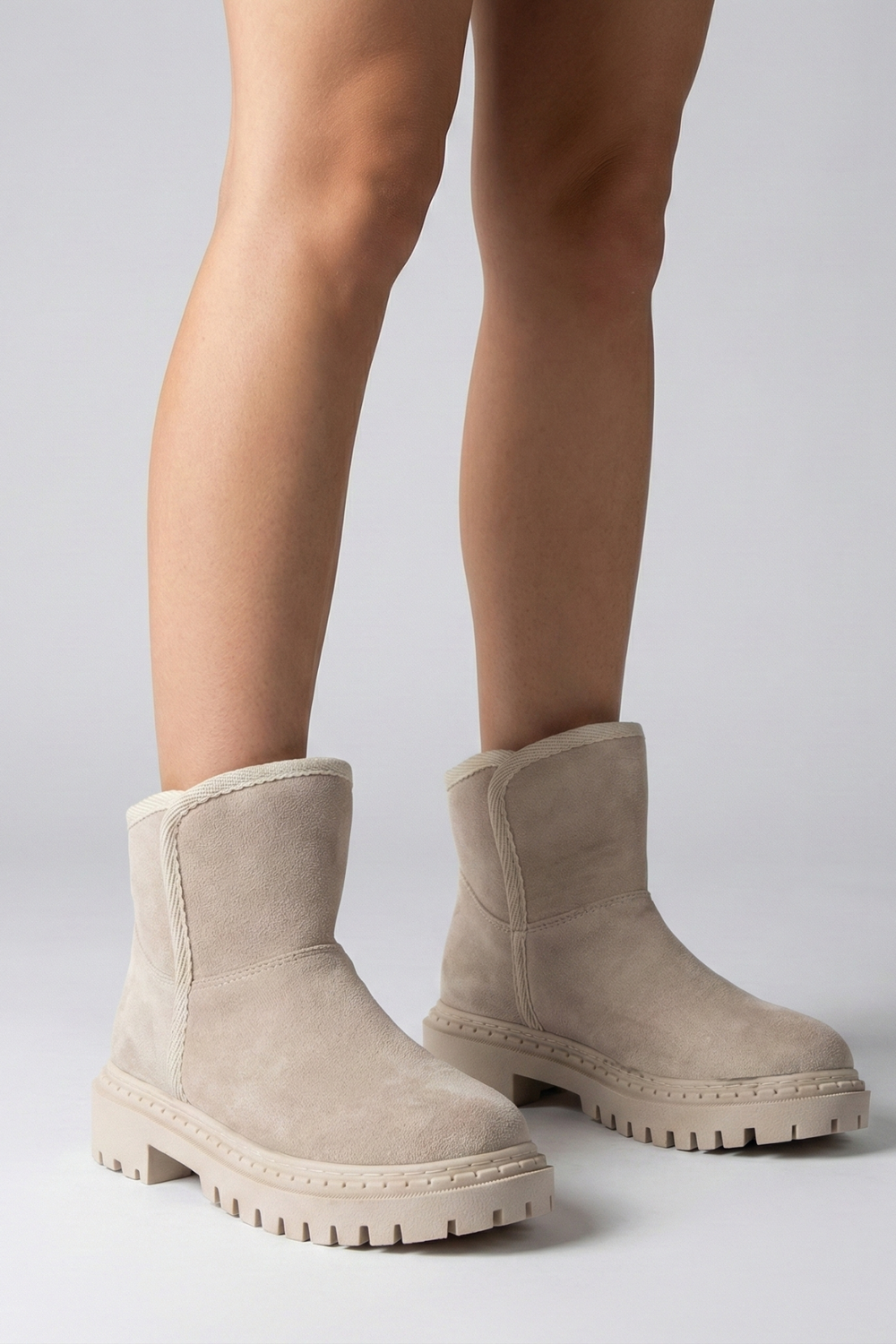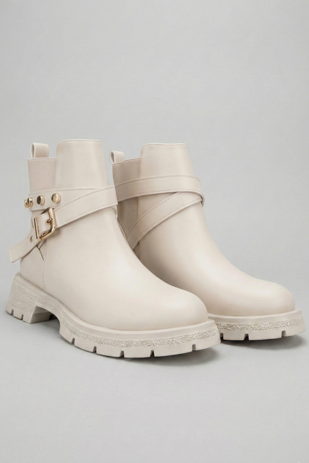 Fonsi Kadın Cilt Kalın Taban Bej Bot