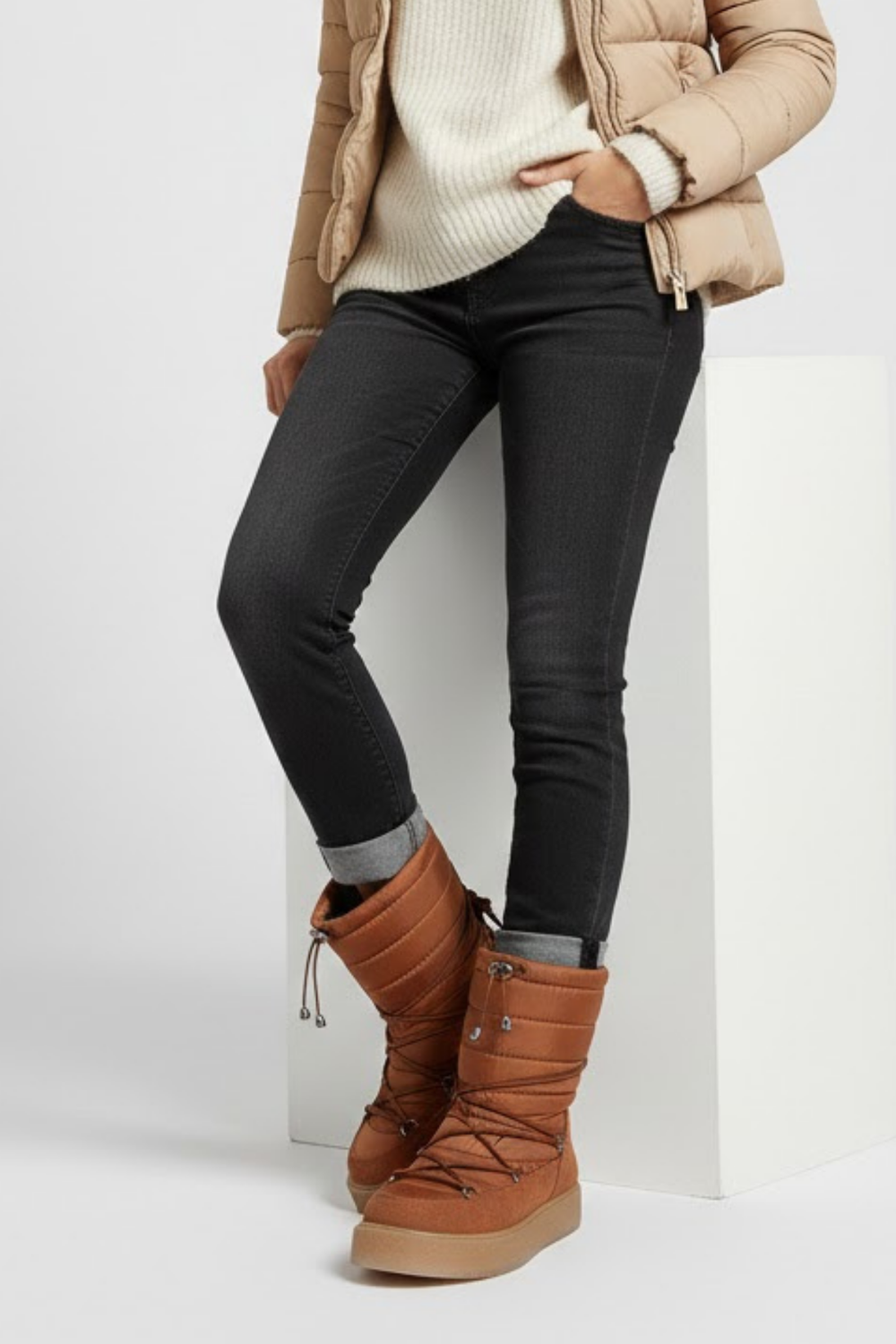 Lauren Kadın Paraşüt Kumaş Kalın Tabanlı Siyah Kar Botu