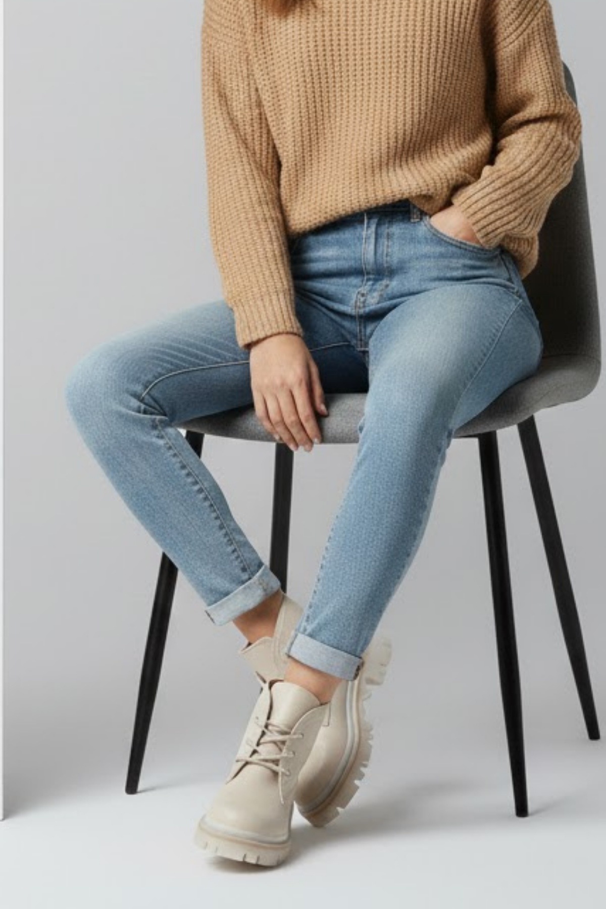 Fonsi Kadın Kalın Taban Cilt Bej Bot