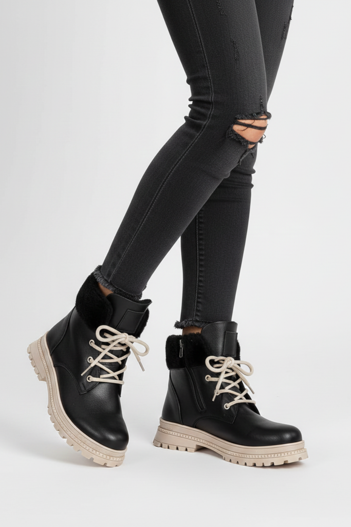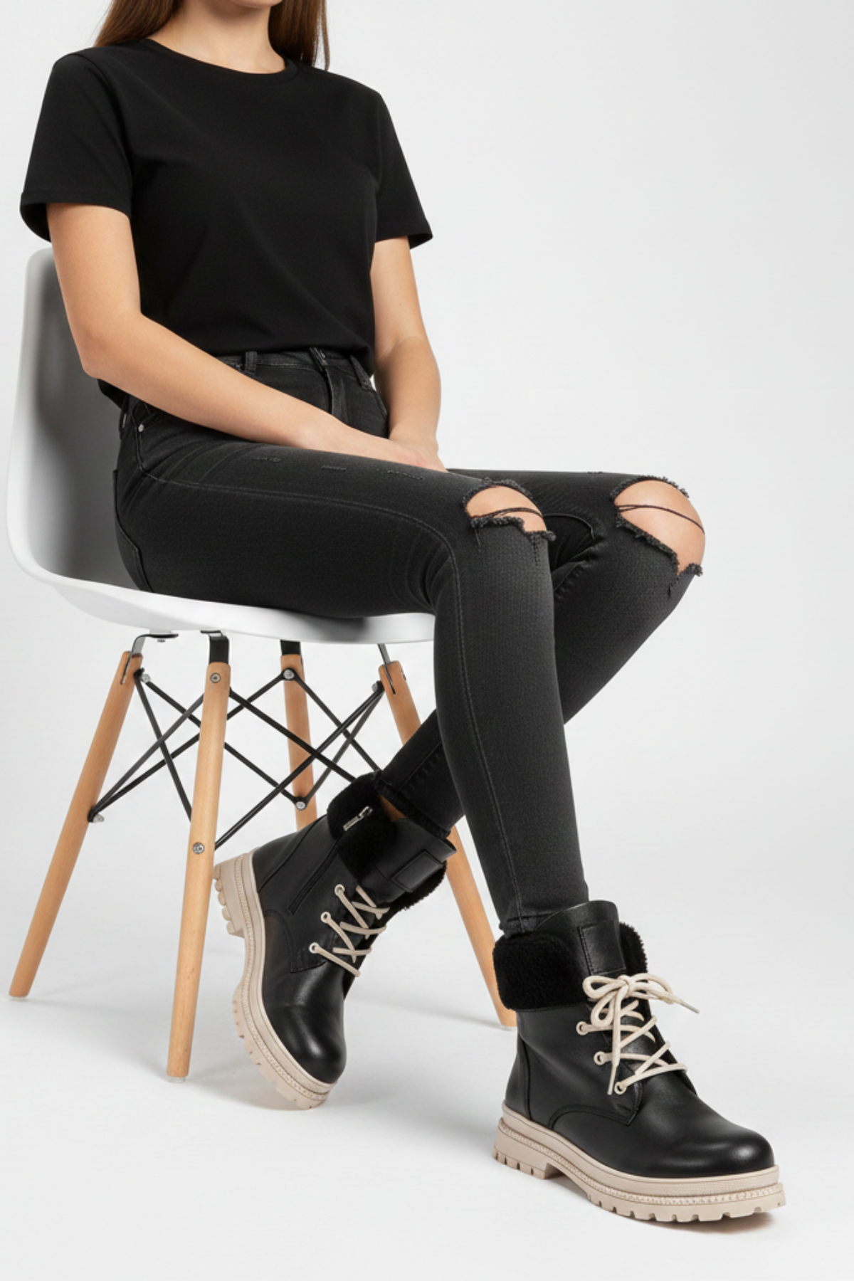 Alt tabanı kabartmalı yazı detaylıdır ve kaymaz özelliğe sahiptir. Yumuşak iç astara sahiptir. Kışın her koşulda rahatlıkla kullanabileceğiniz sade ve şık bir bot. Bağcıklı ve bilekten kürklü oluşuyla rahat bir kullanımı mevcuttur.