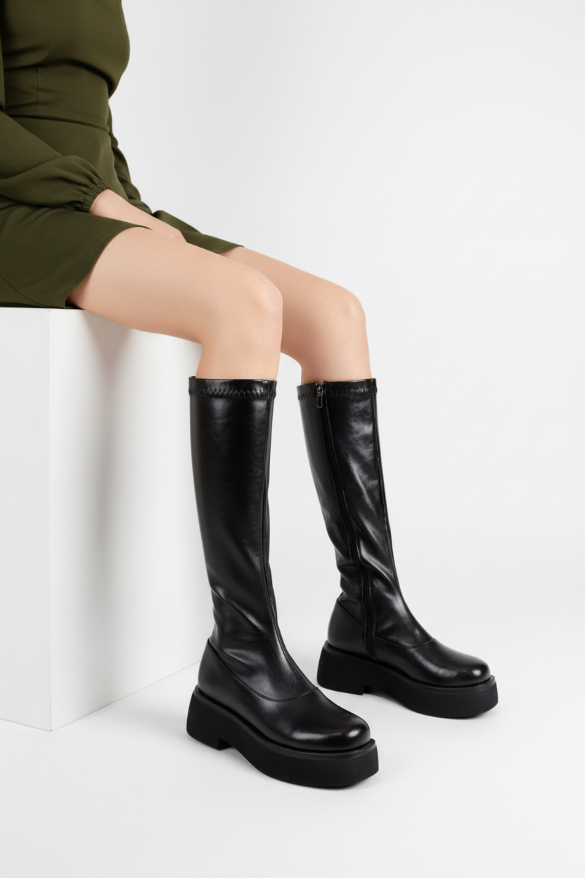 Aylan Kadın Siyah Kalın Tabanlı Çizme