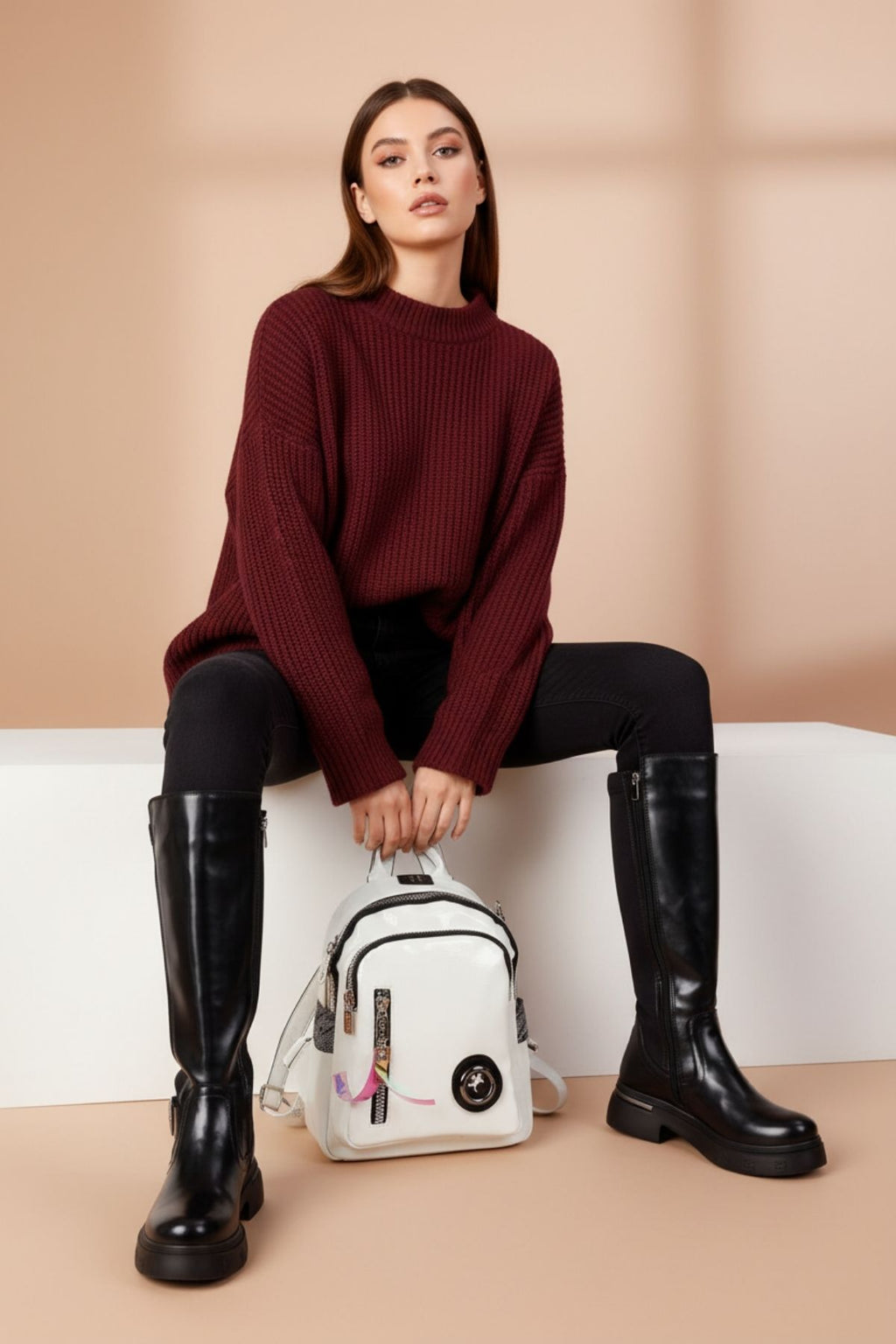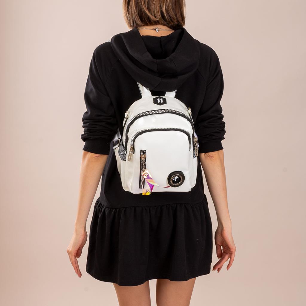 Arka yüzünde 1 adet fermuarlı gözü, ön yüzünde 2 adet fermuarlı gözü ve 1 adet fermuarlı ana gözü bulunmakta olan yarı rugan görünümlü sırt çantasının 3 farklı renk seçeneğinden dilediğinizi tercih edebilirsiniz.