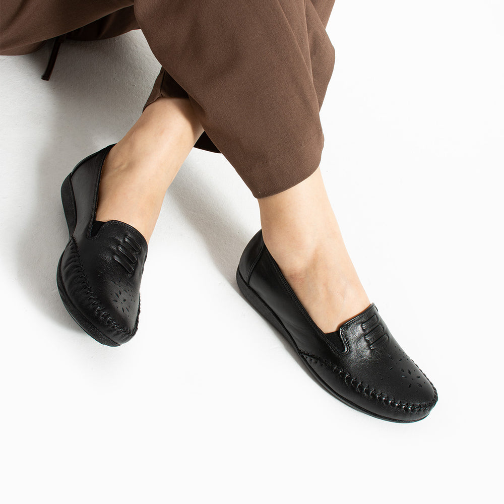 Her adımda seni hafifleten zarif bir stil! Yumuşak hakiki deri yapısı ve esnek tabanı ile konforlu bir yürüyüş deneyimi sunan bu model, gündelik kombinlerine zahmetsiz bir uyum sağlar. Hafifliği sayesinde uzun süreli kullanımlarda dahi rahatsızlık vermez, dikiş detaylarıyla ise zarif bir dokunuş kazandırır.