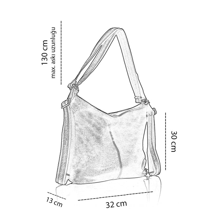 Çıkartılabilir ve ayarlanabilir askıları sayesinde Omuz Çantası , Çapraz Çanta ve Sırt Çantası olarak kullanılabilir. Şık tasarıma sahiptir. Her mevsim rahatlıkla kullanabilirsiniz. Derin ve geniş hacimli Omuz Çantası ile kombinlerinize ışıltı katın!