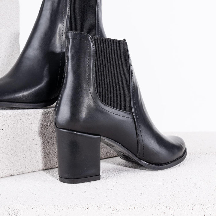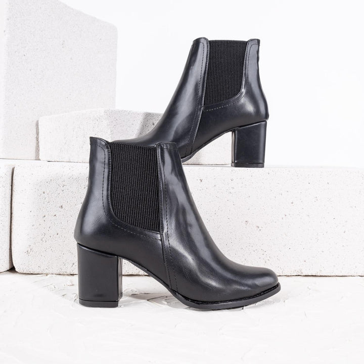 Vadina Lastik Detaylı Kadın Topuklu Siyah Bot