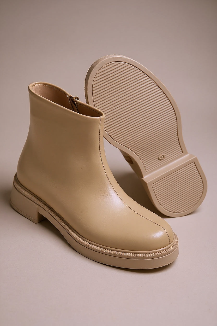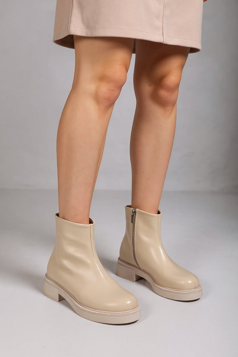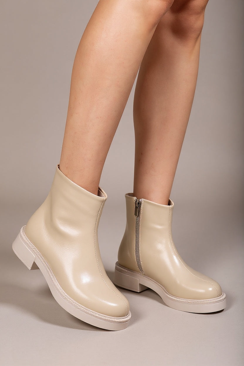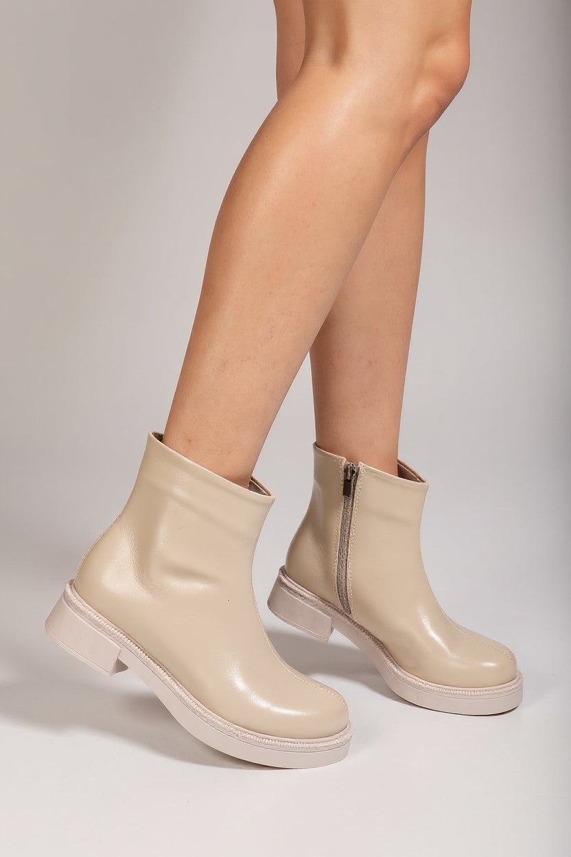 Asian Bej Kırışık Rugan Fermuarlı Kadın Bot