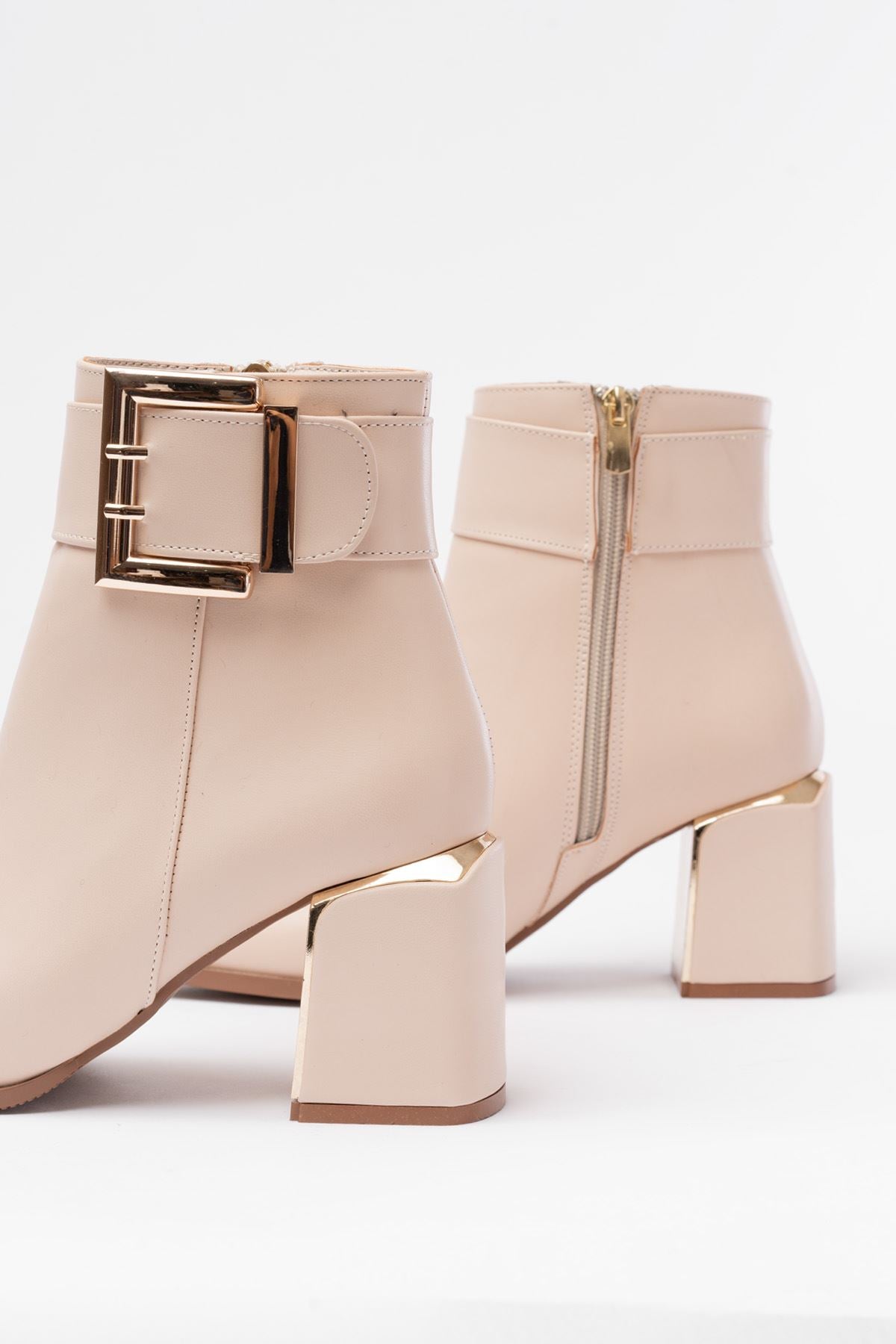 Banur Bej Toka Aksesuarlı Topuklu Fermuarlı Kadın Bot
