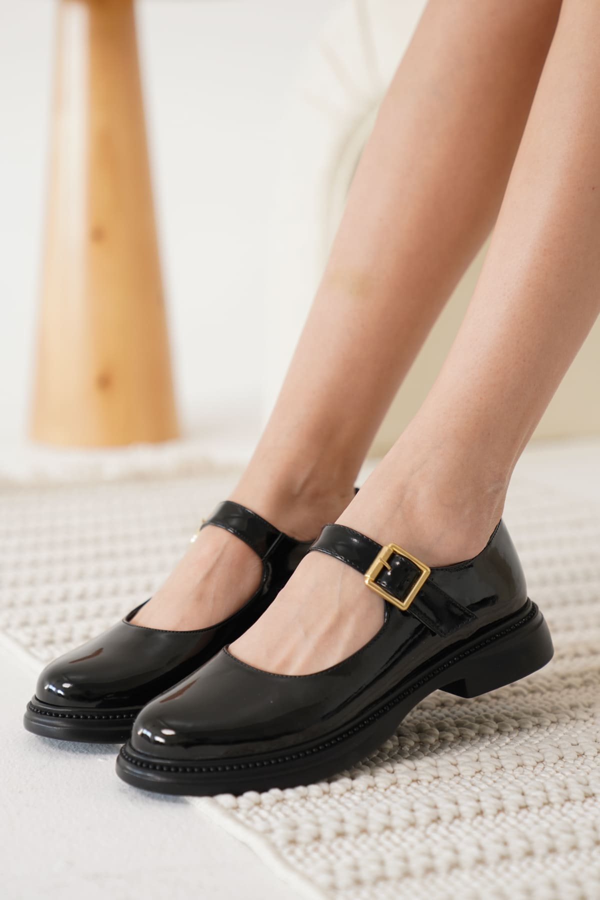 Briana Kadın Siyah Rugan Babet Ayakkabı
