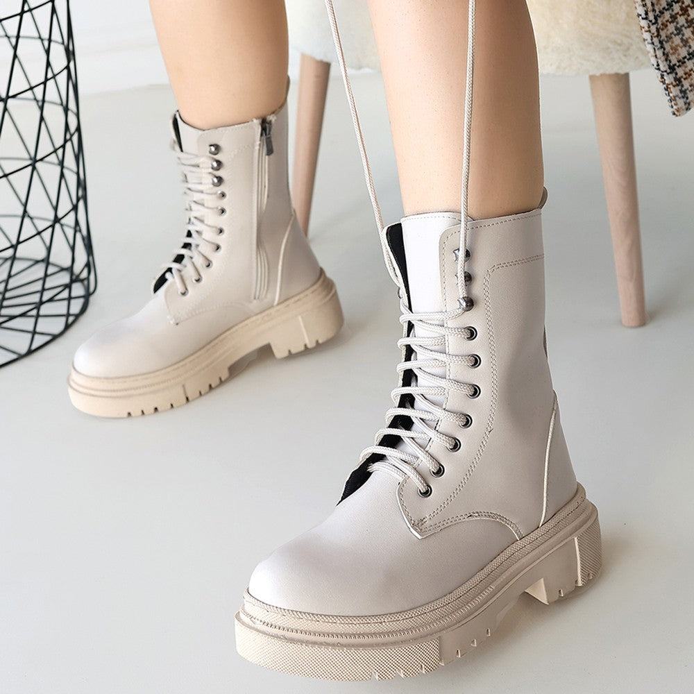 Caxa Kadın Bej Kalın Tabanlı Bağcıklı Bot