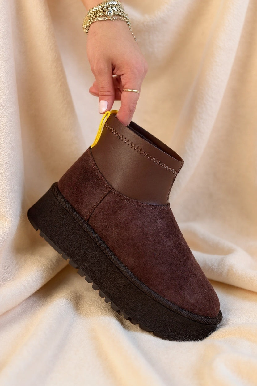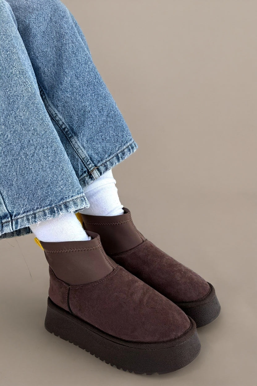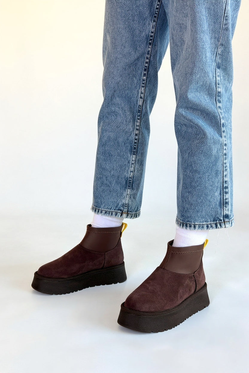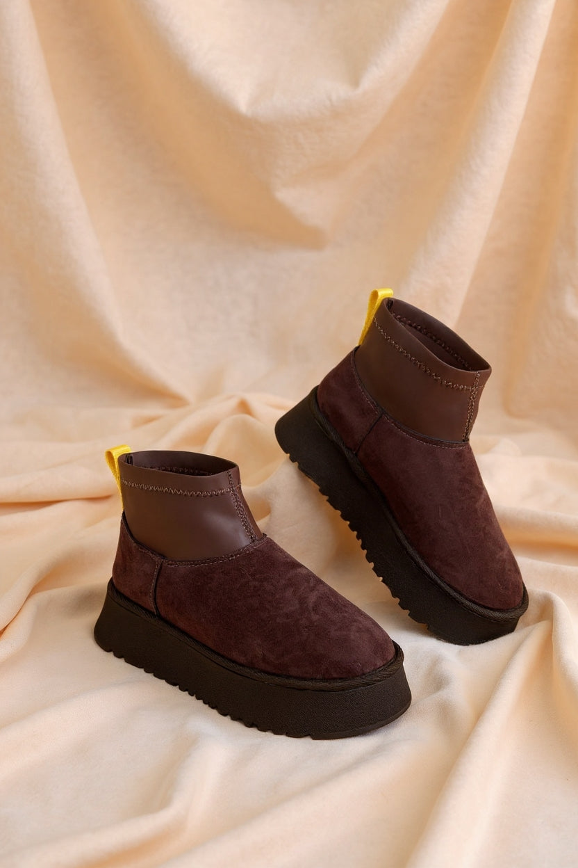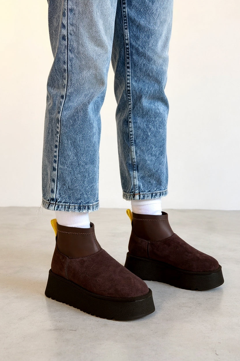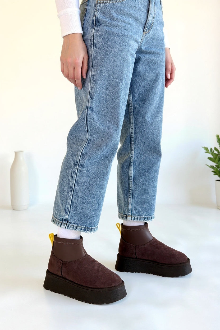 Cuen Kadın Kahverengi Streç Boğazlı Kürklü Süet Bot