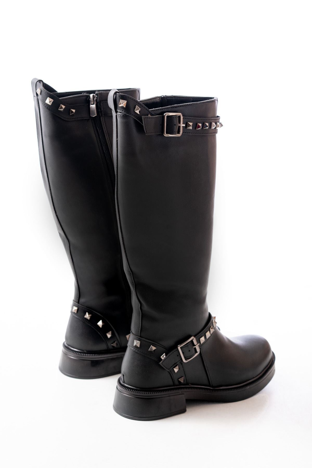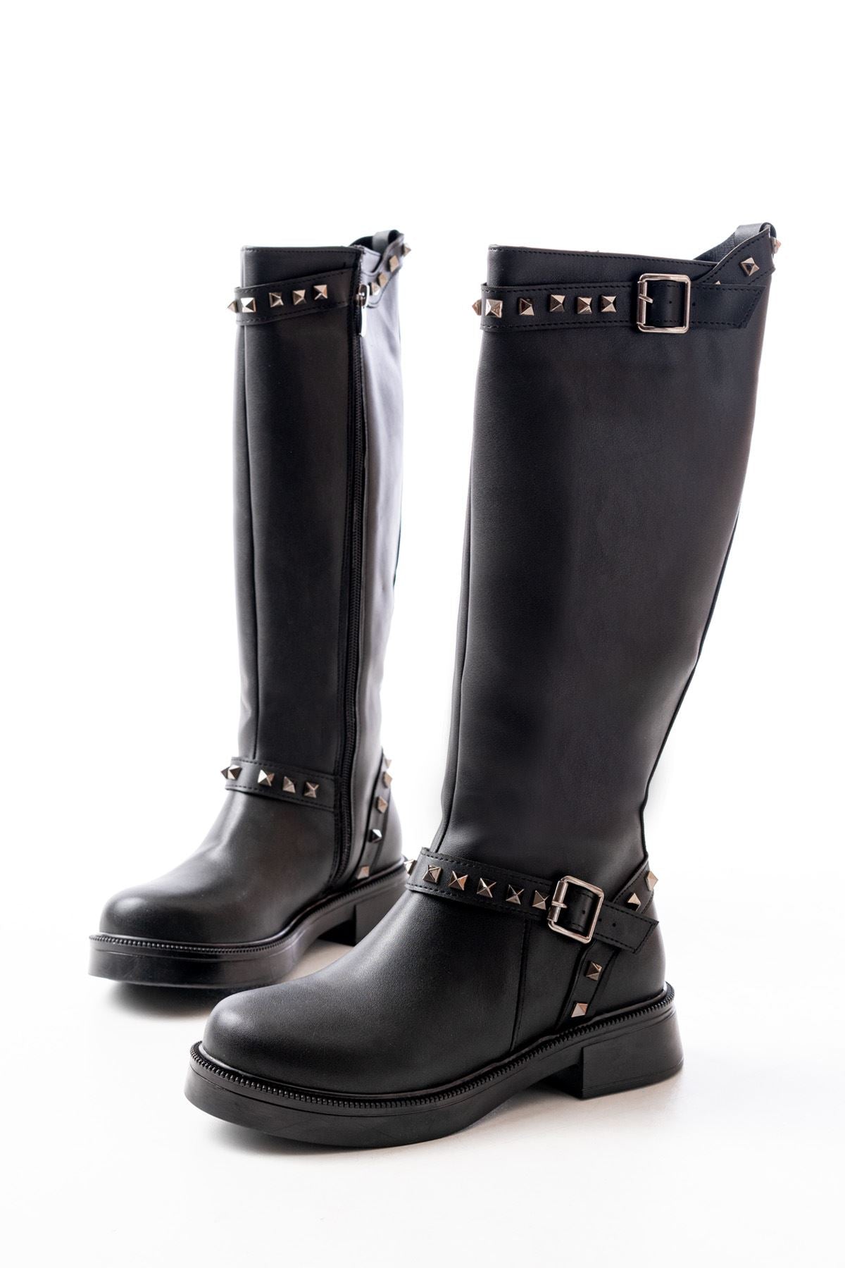 Delfin Kadın Siyah Düz Topuklu Binici Çizme