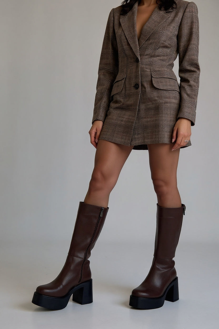 Dimsan Kadın Kahverengi Kalın Topuklu Diz Altı Çizme