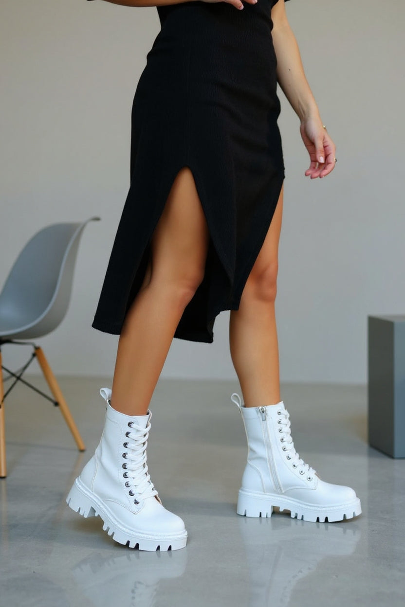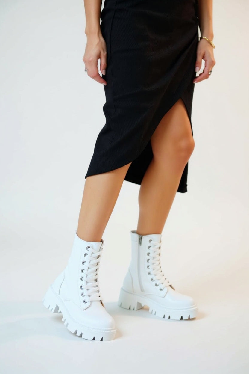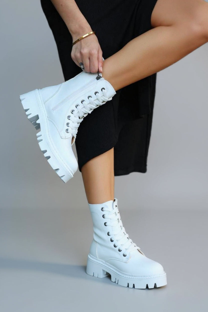 Flona Kadın Beyaz Bağcıklı Bot
