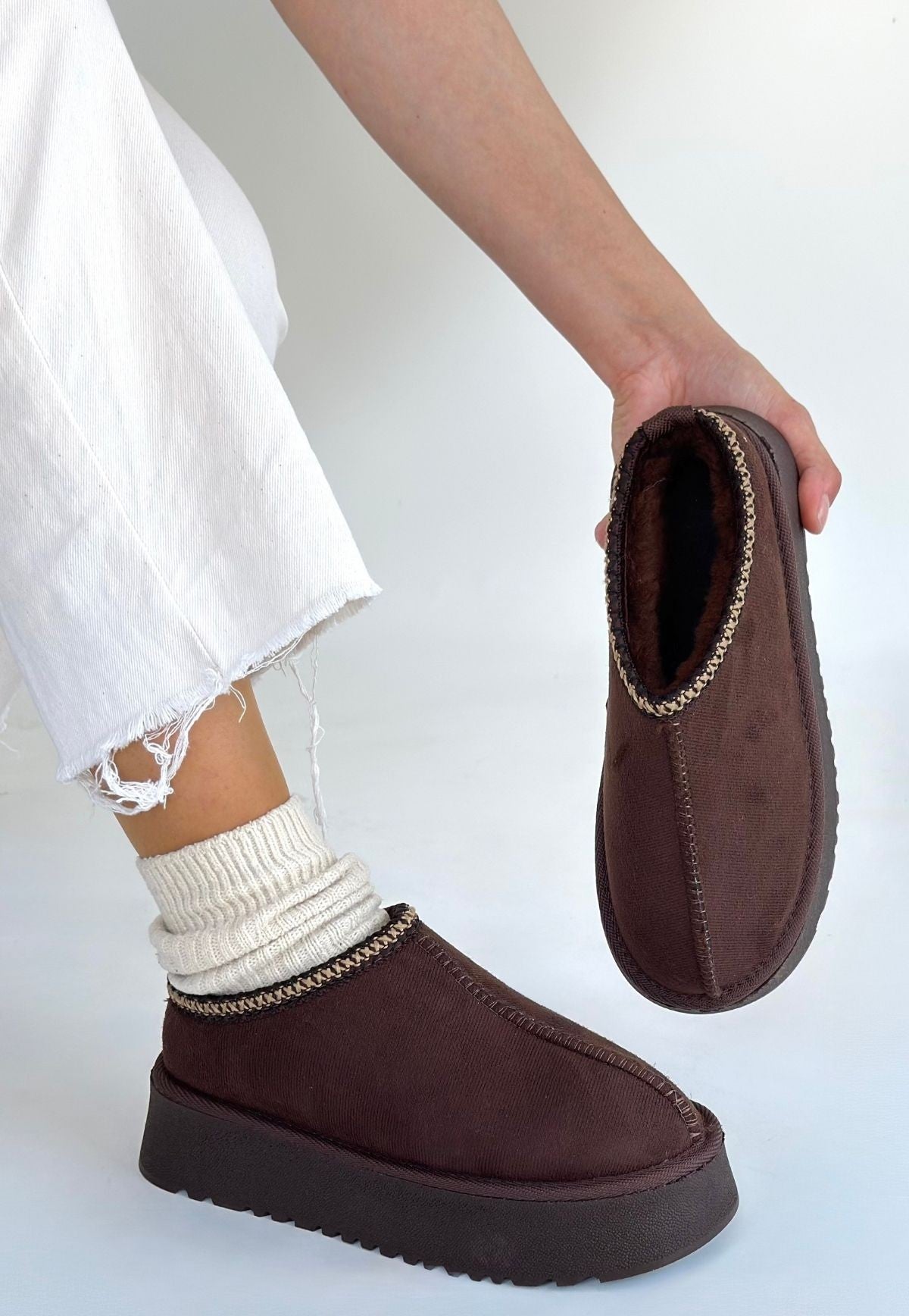 Foyk Kadın Kahverengi İçi Kürklü Süet Bot