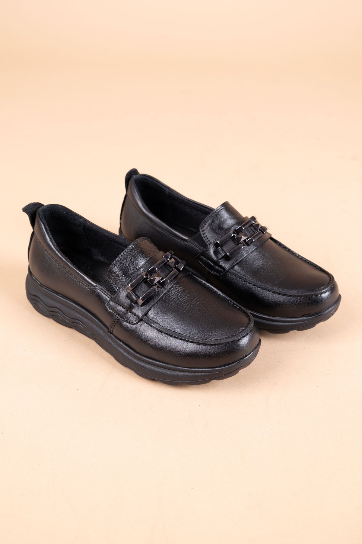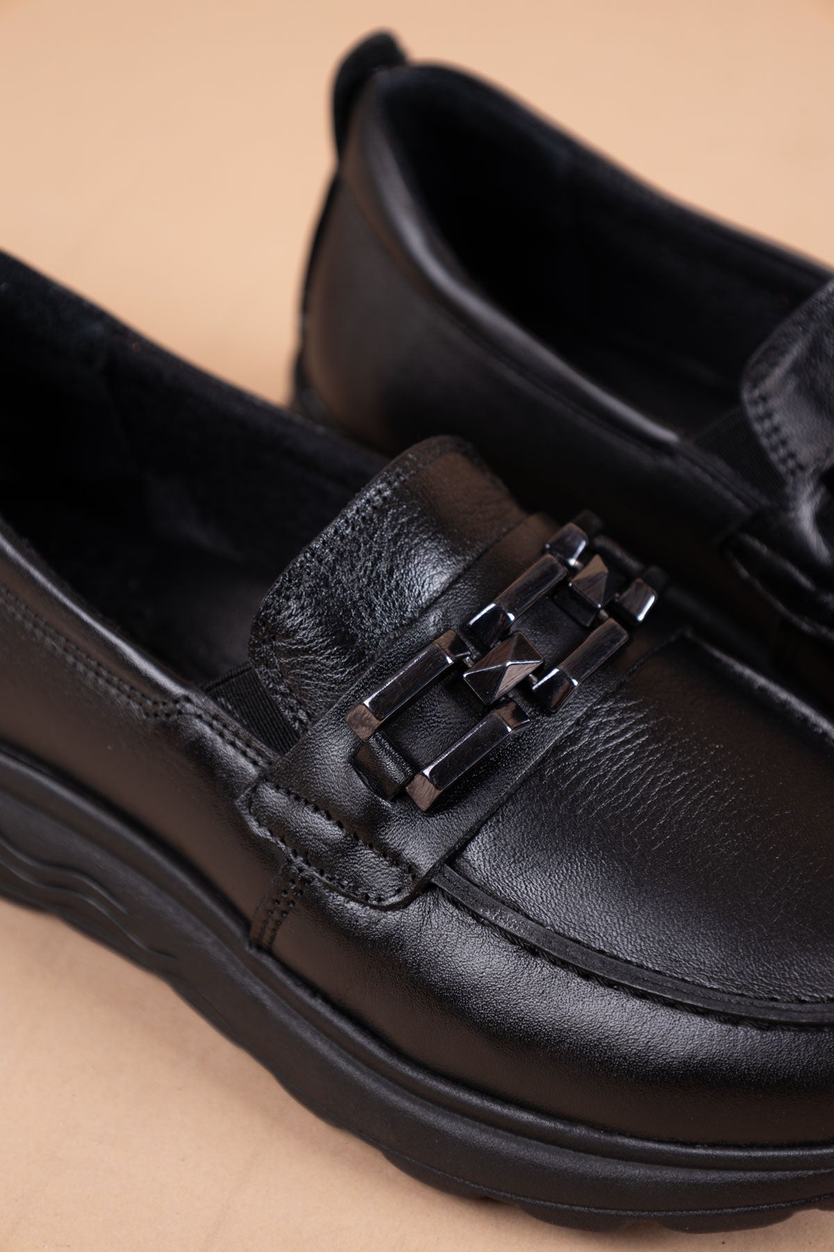 Garse Kadın Hakiki Deri Siyah Loafer Ayakkabı