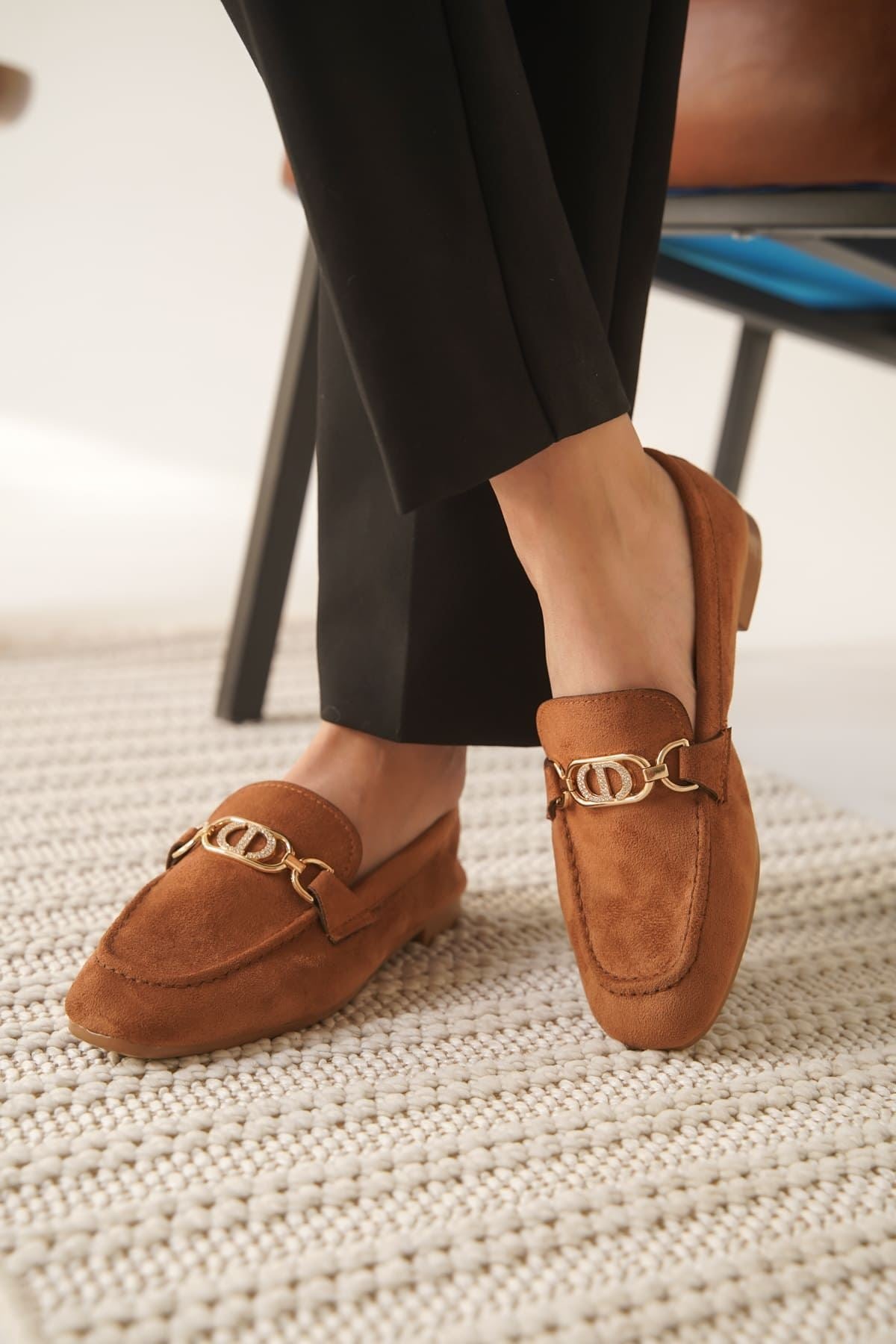 Hera Kadın Tokalı Taba Süet Loafer Ayakkabı