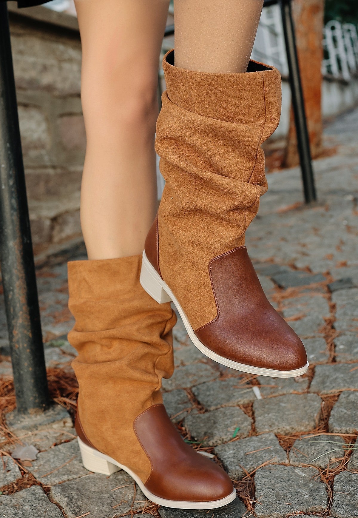Jolin Kadın Taba Süet Detaylı Körüklü Çizme