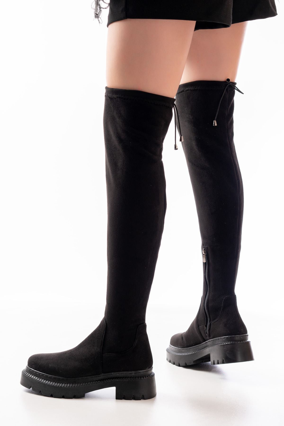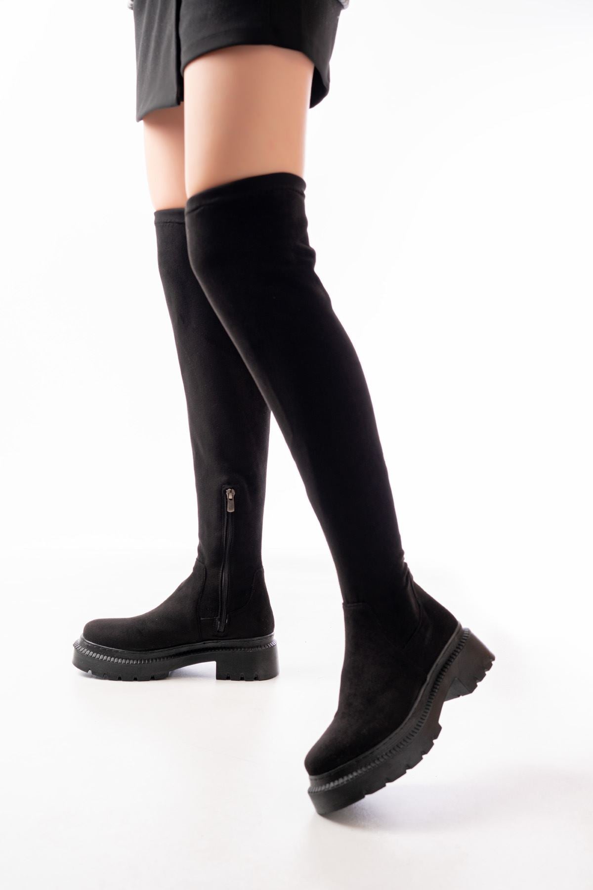 Lilyun Süet Streç Diz Üstü Fermuarlı Kadın Çizme
