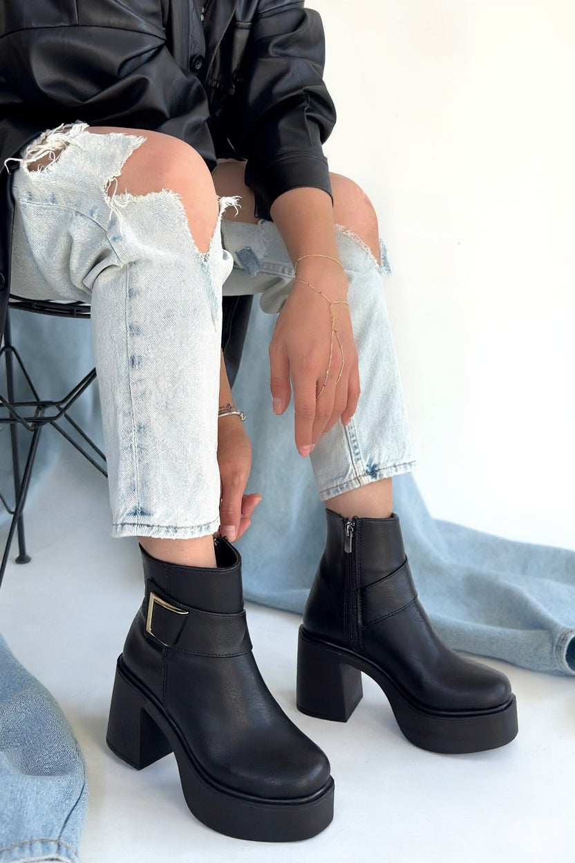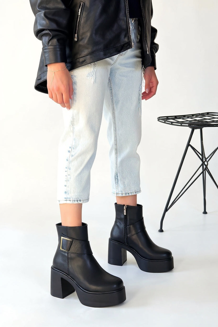 Lonji Kadın Siyah Tokalı Topuklu Bot