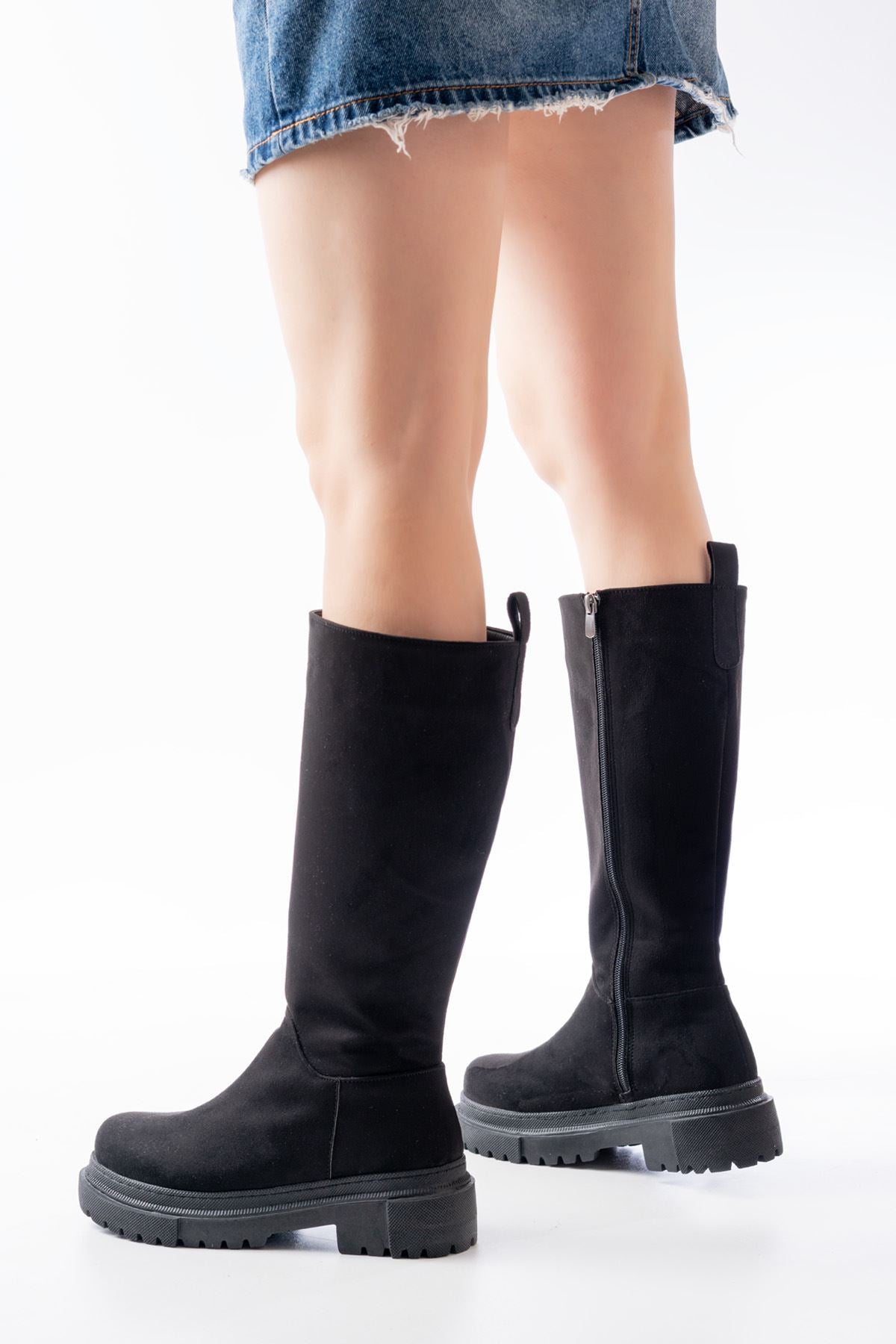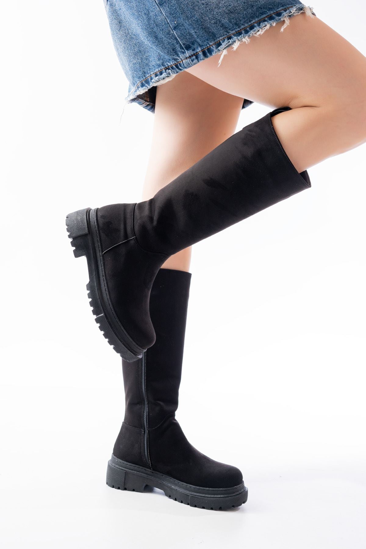 Milarn Siyah Süet Fermuarlı Kadın Çizme