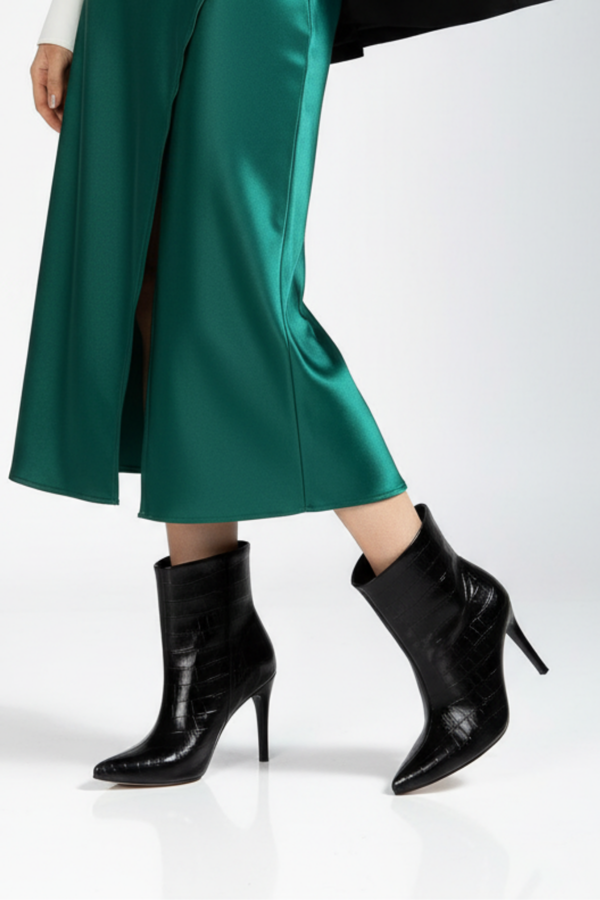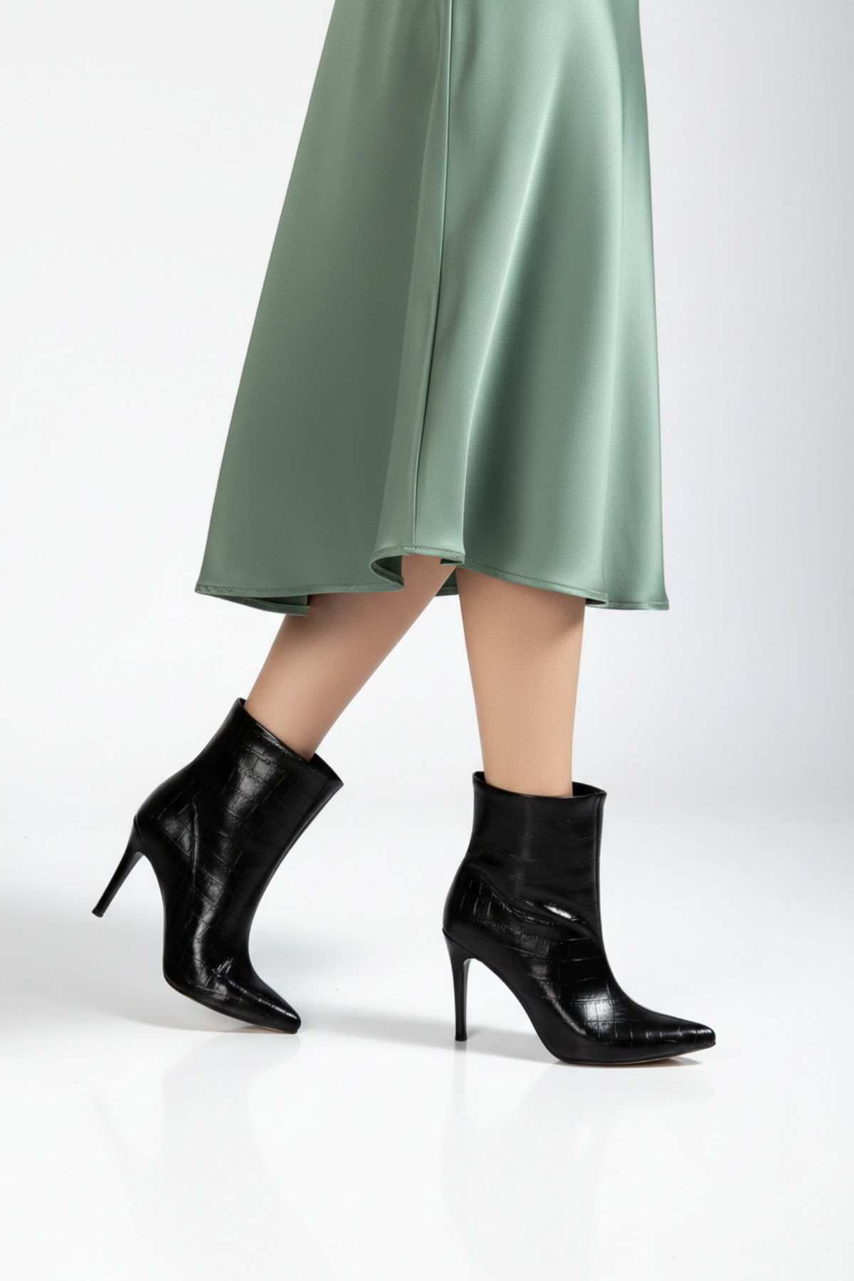 Mirelle Kadın Siyah Kroko Sivri Burun İnce Topuk Bot